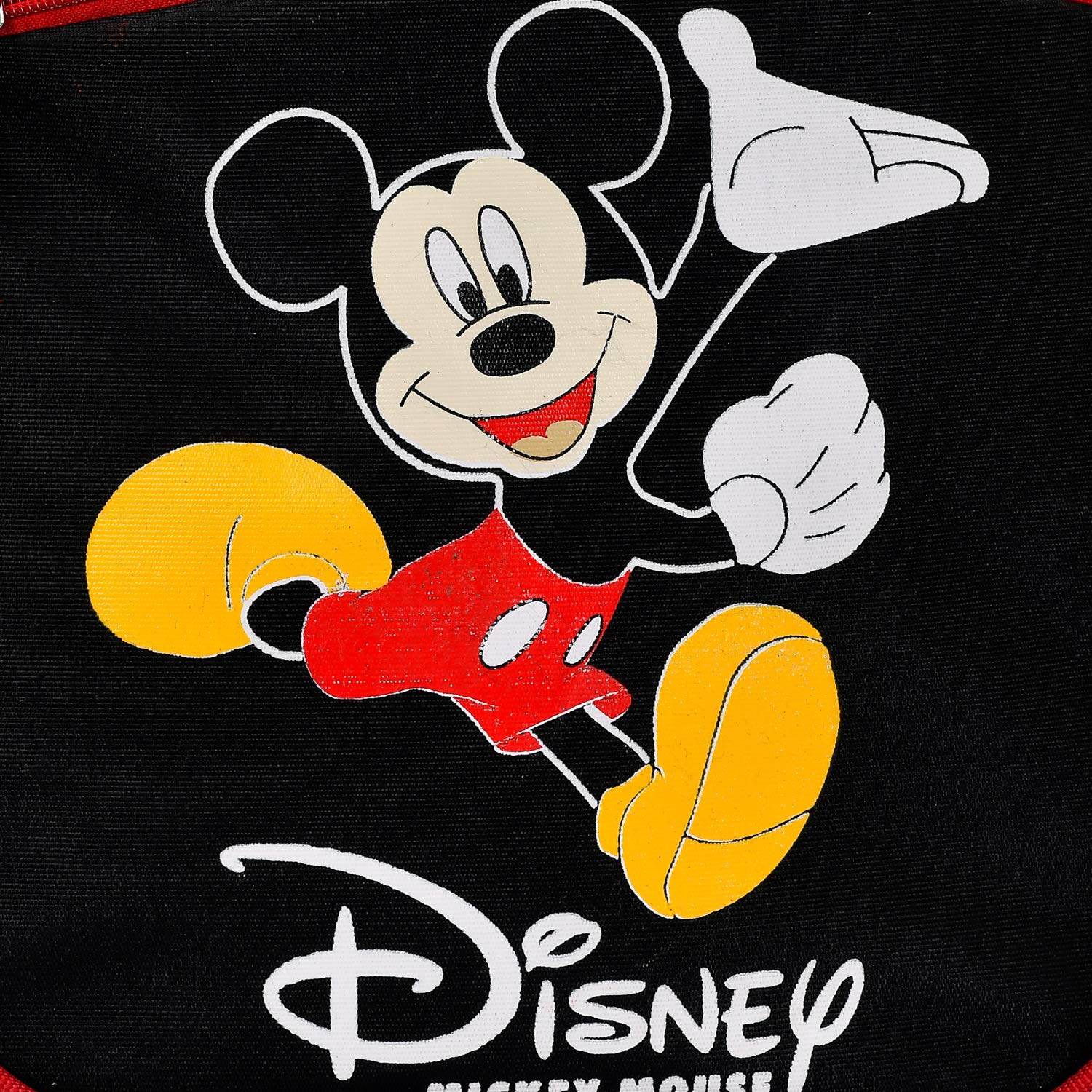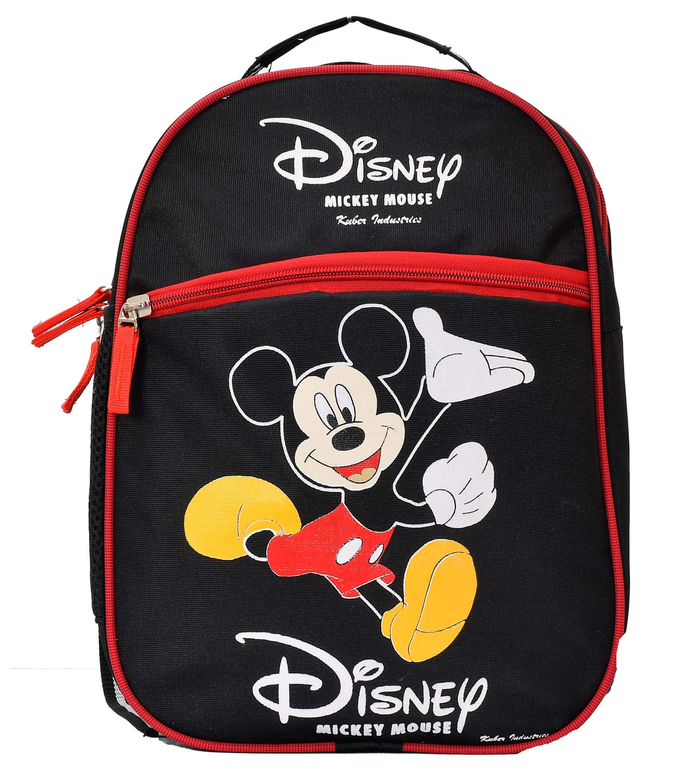 Outer Material: waterproof polyester, Color: Black, it is water resistant school bag., number of compartments: 3. Capacity: 10 liters; Weight: 200 grams; Dimensions: 28 cms x 17 cms x 36 cms (LxWxH), this bag comes with attractive mickey print on front. Made up of durable and quality Polyester material. Spacious to accommodate all your essentials., two adjustable shoulder straps. 2 main compartment and 1 front compartment 1 water bottle side mesh pocket. Haul loop. Light weight and easy to carry., fashionable, light-weight, soft and colorful, a perfect gift for your kids. It is very soft and lightweight., its can be used up to 1st standard class.Detailed Specifications: