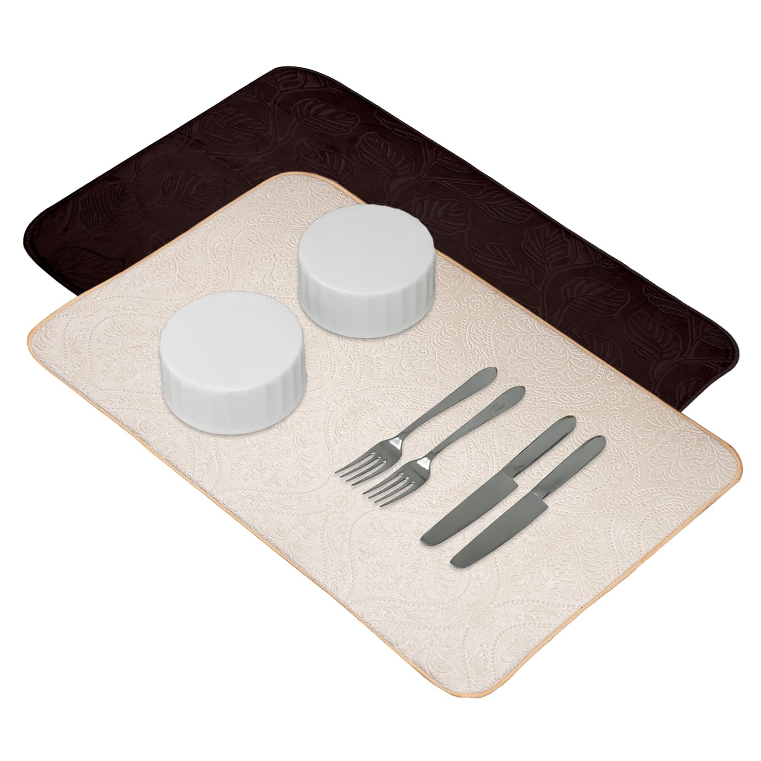Introducing the Heart Home Microfiber Kitchen Dish Drying Mat ↪ an exceptional addition to your kitchen that sets new standards for convenience and cleanliness. Meticulously designed, this mat effortlessly whisks away moisture from freshly cleaned dishes, glasses, and utensils, leaving them impeccably dry and free of spots in mere moments. Its ultra-thin construction boasts unparalleled absorbency, rivaling bulkier alternatives, while maintaining a sleek profile that seamlessly integrates with any kitchen decor.Detailed Specifications: