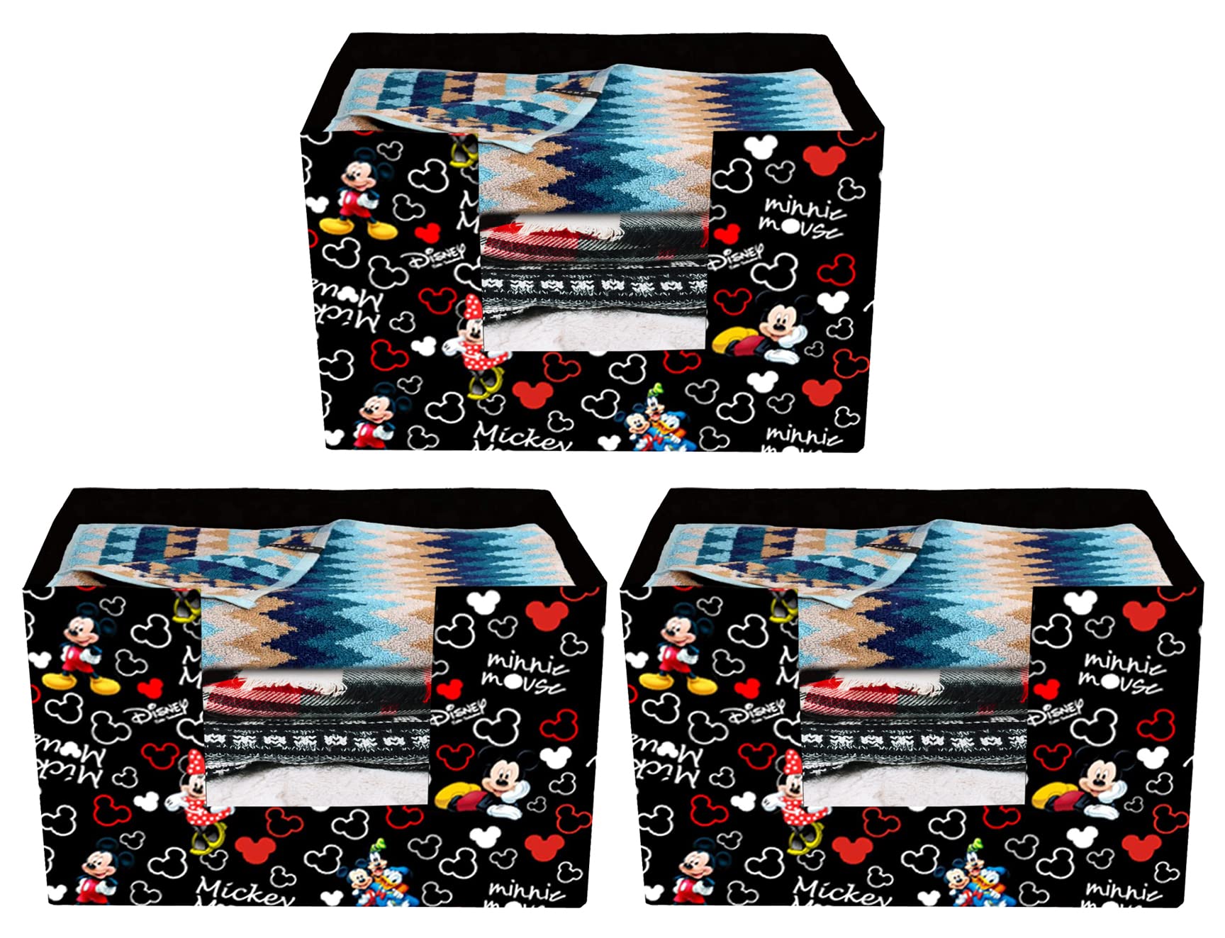 Keep playroom, bedroom and closets organized with Heart Home Disney Mickey Mouse Printed colorful folding storage bins. These fabric storage bin are a fun and creative way to organize; toys, clothes, blankets, towels and so much more.These bins are built to be easy and functional for your home. Bins have reinforced handles on two sides for easy carrying and access, storage bins ship flat with a cardboard insert to be placed at the bottom to give shape and they have cardboard sides to add structure. This storage comes with an open design for easy access. If you really need to stack them to save room, we recommend filling the bottom box with infrequently used items before stacking. Made of high-quality non-woven fabric with strong durable stitching, anti-wrinkle-free, lightweight. It has been tested for a long time using. Space-saving design, This box is foldable for space-saving, easy to set up and convenient to carry. Can be folded when not in use.Detailed Specifications: