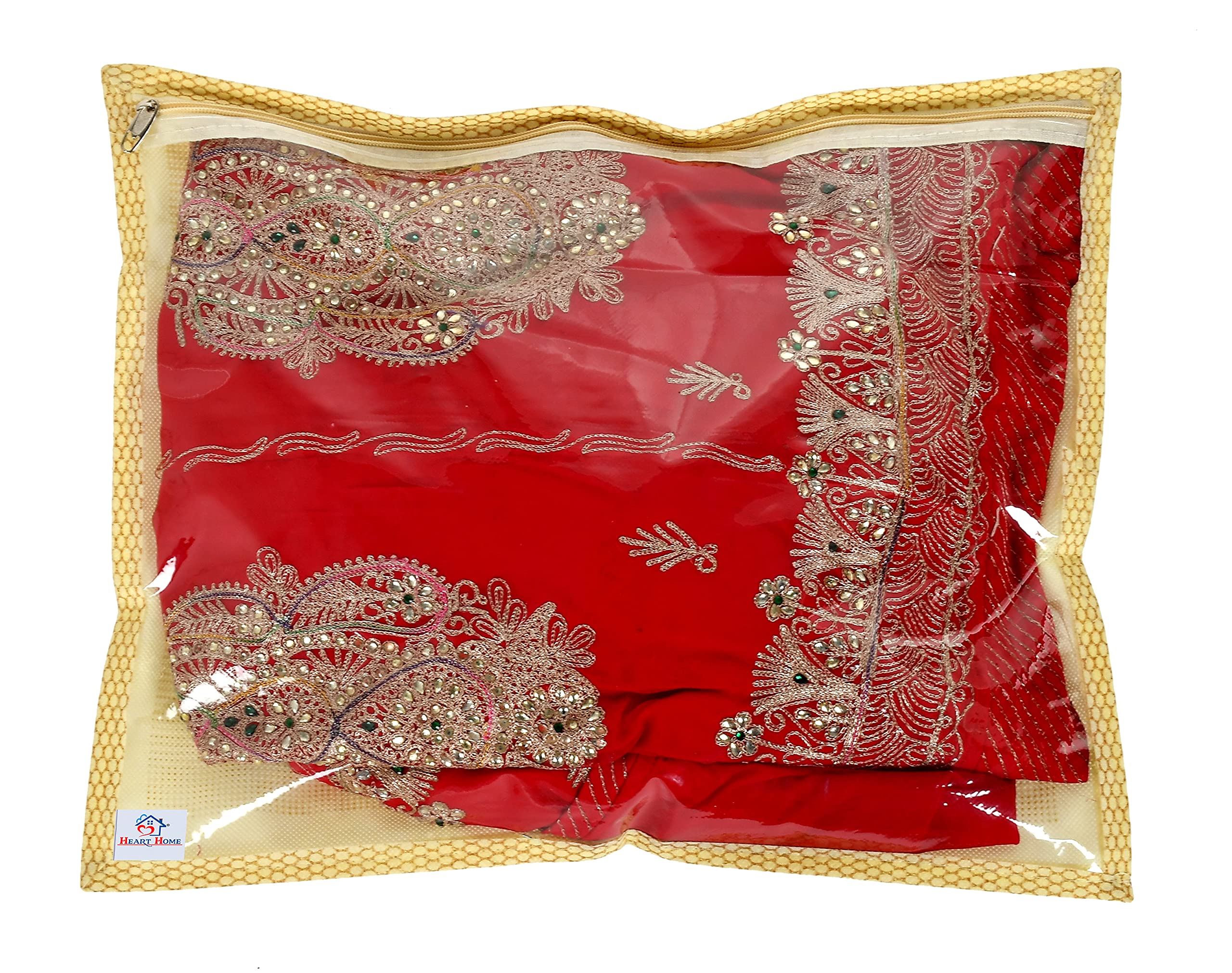 Heart Home brings Pack of 3 saree covers for your convenience. It is the perfect solution to keep expensive sarees and other garments in one bag to avoid dust,insect and moisture. Transparent plastic view from front for your sarees. It is made with good satin fabric with clear thick plastic top for inside view, it is provided with anti-slide zipper - making it lightweight and durable. Every wedding and festive season finished, you need to organize the off-season sarees into your closet or under-bed, if you put the sarees in closet or under bed directly, it may look dirty when you wear them in next season, the saree bags will protect your sarees and keep them clean. These saree bags organizing your suitcases or travelling bags is therefore very easy .keep your sarees in these storage bags and stack them neatly in your cupboard, can protect your sarees from dust.