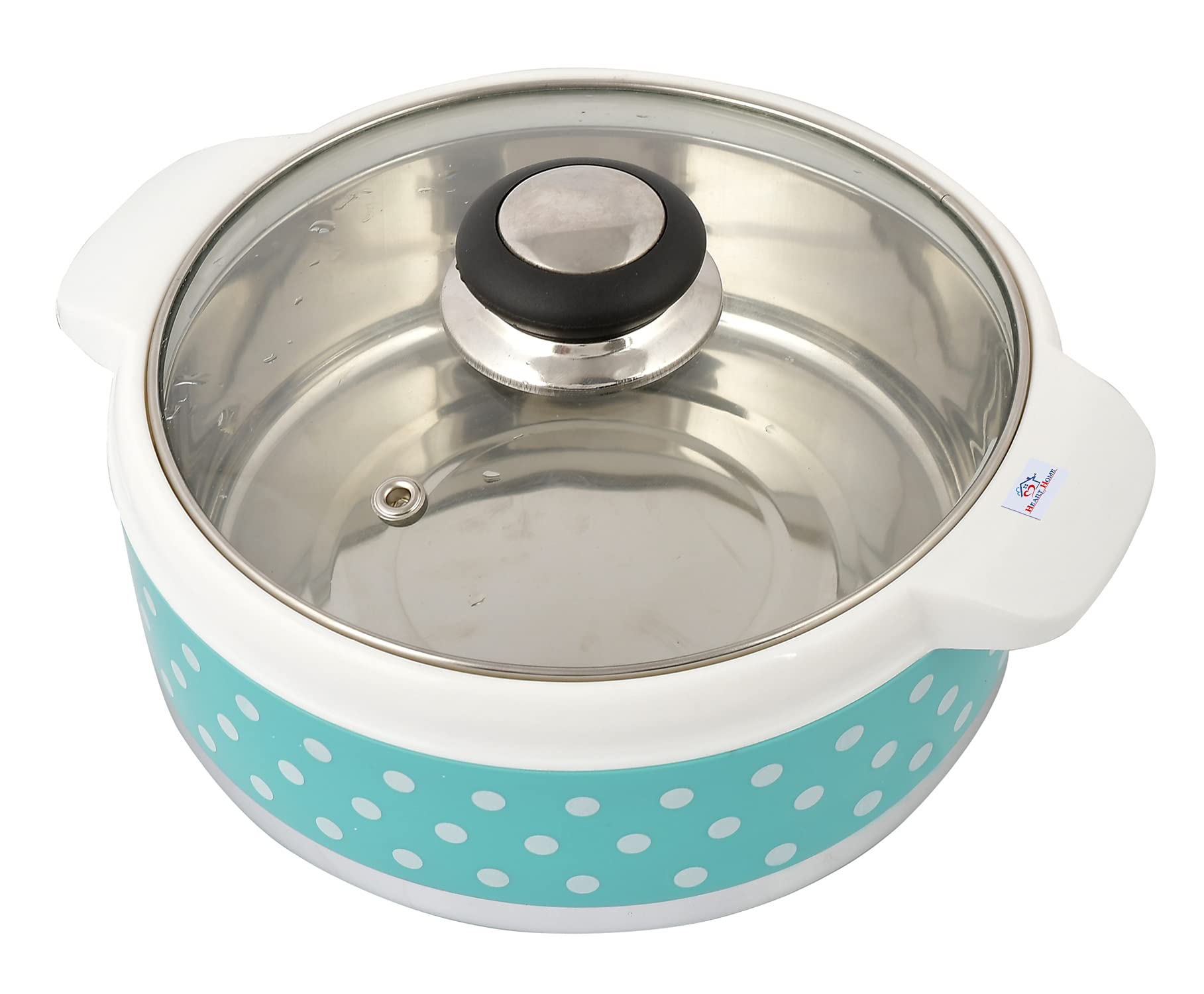 Eating hot and fresh food is everyone’s desire and Heart Home casserole with a stainless steel interior and plastic outer body retains heat effectively for long periods of time. Now eat a hot and healthy lunch or dinner even on your busy days, or carry them safely for a day out. The functional yet stylish design also ensures that you can use it as a beautiful serve-ware on your dinner table. The transparent glass lid is easy to open and close and offers the convenience of viewing the food inside. This casserole is lightweight, durable and affordable, thus making it an essential add-on to your kitchen cabinet. It can also be an ideal companion for your travels and comes with a functional tranasparent glass lid which fits snugly, keeps food airtight, and can be easily removed.Can be used to - keep the food items in hot or cold position for few hours - for serving food - preserving food - and more. Ideal for universal taste. Ideal for Gifting. Featuring smart finish with attractive graphics, this insulated container is simple to use, and elegantly designed to take centre-stage at your dining table.Detailed Specifications: