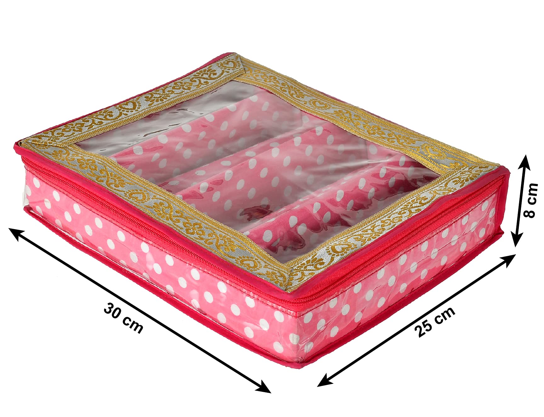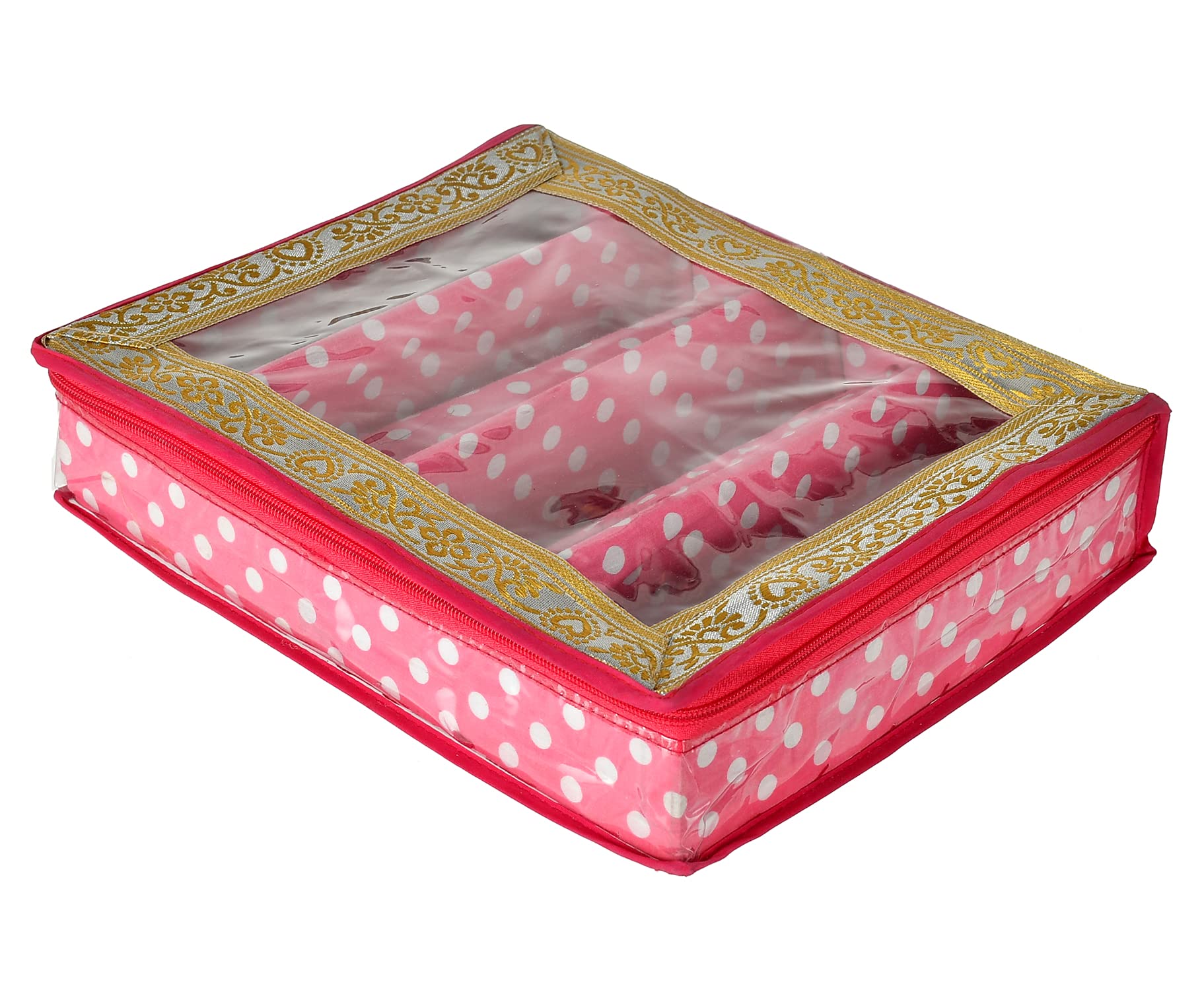 Heart Home Bangle box is made of good quality pvc material so, this is very durable, long-lasting and very useful. A bangle is an ageless accessory that has a special place in every woman's collection. The bangle box or a casket is a beautiful container and is mostly used to keep many high-end accessories and precious jewelry. The bangle box is a one-stop solution to all the problems. The safety of bangles is ensured as it has a high-class supportive frame that serves the purpose well. The classy bangles can be saved from any kind of vulnerability of harm or damage. It prolongs the natural shine and shimmer of the bangles that make them look like new and brings in loads of appreciation. The arranged bangle box saves you from extra efforts to save the most complimenting thing of your jewelry. It can prove to be the most beautiful gift ever if you plan to give it to your near and dear ones. The box can also be a holder of minute earpieces or very small jewelry. It prevents any loss or misplacement of any jewelry kept inside it the future use.Detailed Specifications: