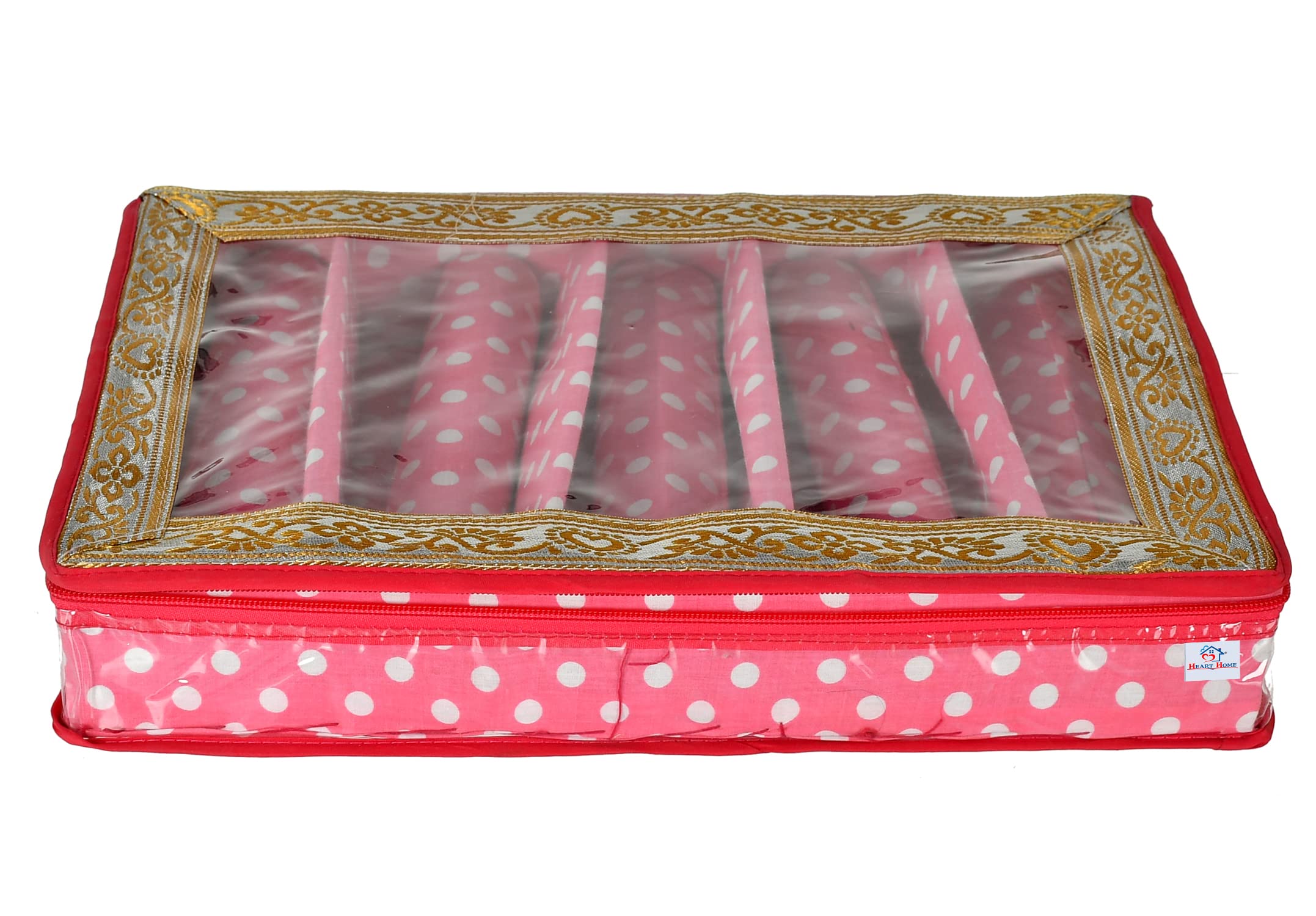 Heart Home Bangle box is made of good quality pvc material so, this is very durable, long-lasting and very useful. A bangle is an ageless accessory that has a special place in every woman's collection. The bangle box or a casket is a beautiful container and is mostly used to keep many high-end accessories and precious jewelry. The bangle box is a one-stop solution to all the problems. The safety of bangles is ensured as it has a high-class supportive frame that serves the purpose well. The classy bangles can be saved from any kind of vulnerability of harm or damage. It prolongs the natural shine and shimmer of the bangles that make them look like new and brings in loads of appreciation. The arranged bangle box saves you from extra efforts to save the most complimenting thing of your jewelry. It can prove to be the most beautiful gift ever if you plan to give it to your near and dear ones. The box can also be a holder of minute earpieces or very small jewelry. It prevents any loss or misplacement of any jewelry kept inside it the future use.Detailed Specifications: