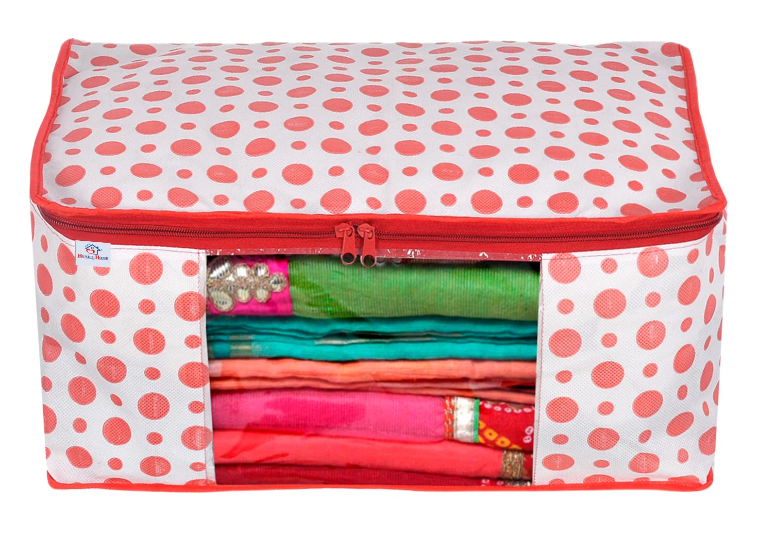 Kuber Industries saree cover is a great organizing companion for your clothes in the wardrobe that keeps your clothes well maintained in one place. It also saves your efforts for finding Saree at the right time. Keeping your favourite sarees at one place is made much easier with this cover, as its great volumnosityavails space for around 7-8 sarees each. You can keep this Saree cover in your wardrobe or carry on a travel to keep your Sarees in proper fold and wrinkle-free. To protect your precious sarees we have come up with Non-Woven fabric which is currently the highest standard in the saree cover / saree bag market , Long life saree cover bag for organizing your costly and favourite sarees. This saree cover are LightWeight and Portable, easily Move to Shelves, Closets, Wardrobe etc—Quickly Pack/Unpack between Seasons, Traveling, Moving, or as Needed. Fold Away or Collapse Flat Under Bed or in Drawers When Not in Use. Transparent see-through window for easy identification of contents. Transparent window providing to instantly know what is kept inside. The clear window saves time when you are searching for any contents. The clothing storage bag is equipped with stainless steel zippers which are very sturdy and smooth to ensure long-lasting durability. The two-way zippers is durable and long-lasting and allow the bag to easily open and close, no matter how full. Zipper closure protects against dust, pest, water damage, and smell.Detailed Specifications: