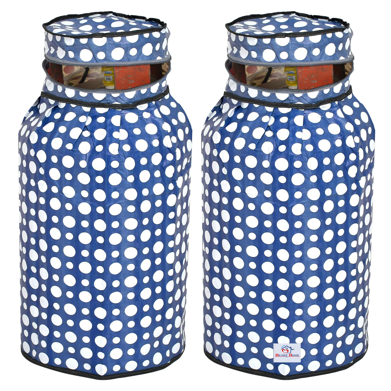 Heart Home Dot Printed Stain/Dust/Water Proof PVC Lpg Gas Cylinder Cover- Pack of 2 (Blue & White)-HS43HEARTH25624