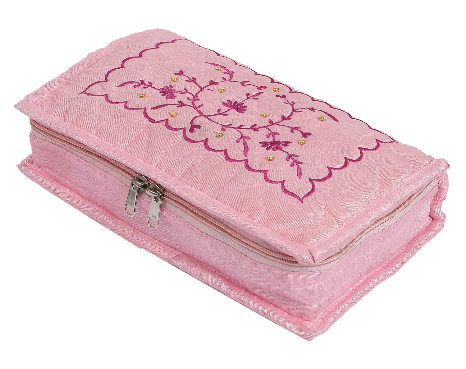 Heart Home multiporpose jewellery Storage Bag Long life High quality dressing kit for organizing your costly and favorite make up material. Prevent your favourite daily use jewellery item protect from dust and moisture. Multipurpose Kit, Bindi Kit, Daily Use Kit, Earrings,Pendants,Necklace,Bracelet, Ring, Pearl Jewellery,Accessory,Head rope,Headband or nail polish, cuffs, makeup brushes, Eye shadow etc. It can portable for easy carry, perfect for travel,Convenient to carry your Jewellery ! This jewellery organizer made of cotton materia. It come with high-quality smooth zippers ensure easy opening and closing. zippers closure allows for easy access to the Jewellery, saving your precious time for a pleasant journey. Design for home and travel use great for travelling, carrying store jewellery, makeup items, cosmetic and other small stuffs or for keeping your jewellery dust-free in the closet. Can also be used as makeup bag, toiletries bags and for other uses. simple and compact design. Jewelry Box Woman with elegant external look. By sending the jewelry box to your wife, mother, daughter, girlfriend and colleagues on special days, such as Valentine's Day, birthday, Mother's Day, Christmas Day or the day of the wedding.Detailed Specifications:
