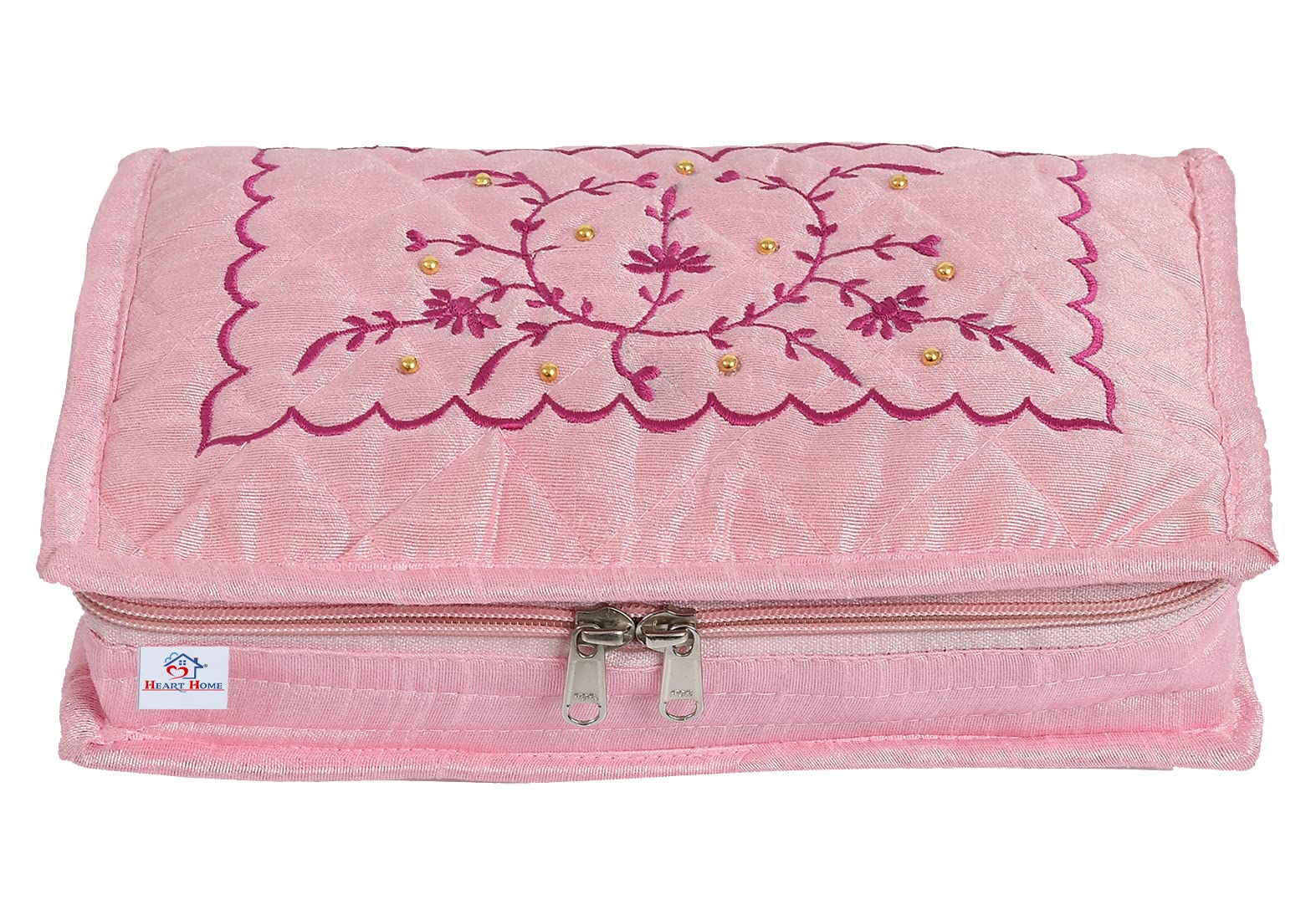 Heart Home multiporpose jewellery Storage Bag Long life High quality dressing kit for organizing your costly and favorite make up material. Prevent your favourite daily use jewellery item protect from dust and moisture. Multipurpose Kit, Bindi Kit, Daily Use Kit, Earrings,Pendants,Necklace,Bracelet, Ring, Pearl Jewellery,Accessory,Head rope,Headband or nail polish, cuffs, makeup brushes, Eye shadow etc. It can portable for easy carry, perfect for travel,Convenient to carry your Jewellery ! This jewellery organizer made of cotton materia. It come with high-quality smooth zippers ensure easy opening and closing. zippers closure allows for easy access to the Jewellery, saving your precious time for a pleasant journey. Design for home and travel use great for travelling, carrying store jewellery, makeup items, cosmetic and other small stuffs or for keeping your jewellery dust-free in the closet. Can also be used as makeup bag, toiletries bags and for other uses. simple and compact design. Jewelry Box Woman with elegant external look. By sending the jewelry box to your wife, mother, daughter, girlfriend and colleagues on special days, such as Valentine's Day, birthday, Mother's Day, Christmas Day or the day of the wedding.Detailed Specifications:
