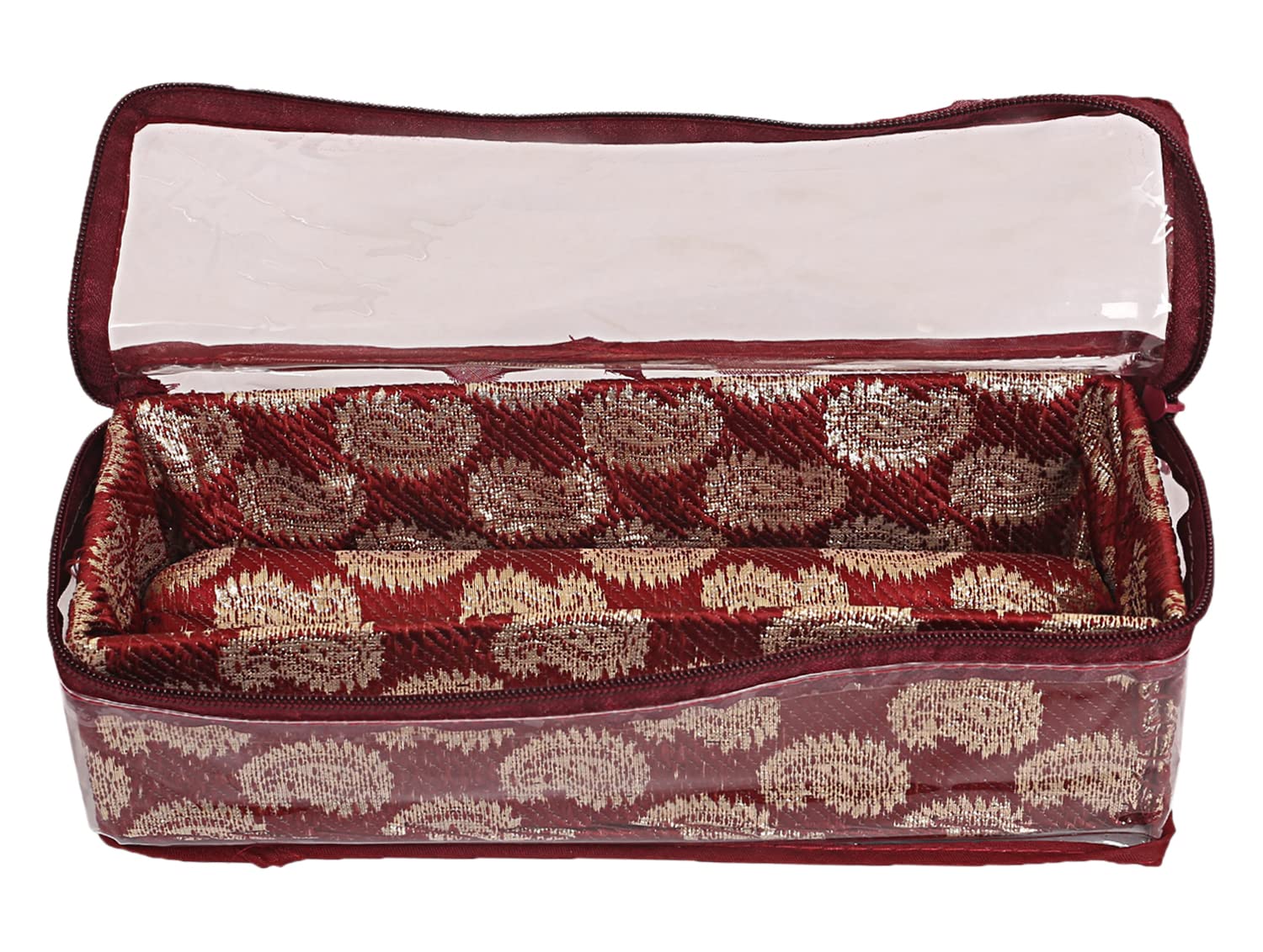 Heart Home storage box, organizer is ideal for storing bangles, watches, Bracelets, jewellery, small accessories etc. This is used to organize your bangles systematically and protect them from breakage so, keep delicate your bangles safely this is enough to keep your bangles and all needs. This bangle box is made of good quality laminated wooden and paperboard material so, this is very durable, long-lasting and very useful. There are 1 rods inside to hold bangles stiffly at a place and avoid unnecessary tangling and breaking. It gives them a strong and stable hold to keep the brittle and beautiful bangles safe. It can accommodate many bangles and helps you in organizing them safely. The box is strong and thus helps in holding the bangles to avoid any breaking and damage. The strong frame fits at any comfortable place and looks indeed beautiful due to its decoration on a strong frame. The three rods fitted into the box completely hold the bangles firmly and strongly. The transparency of the pouch makes it even more revealing and attractive. The see-through pouch helps you see and know what is there inside and what is missing. If anything goes missing or bangles are broken we can immediately take the required steps of either replacing or getting new ones. It always reminds us of the availability and unavailability. With elegant appearance and considerate design, this watch case is great for personal use, shop display and home decoration. Will be an ideal gift for birthday, valentine's day, wedding, Christmas and new yearDetailed Specifications: