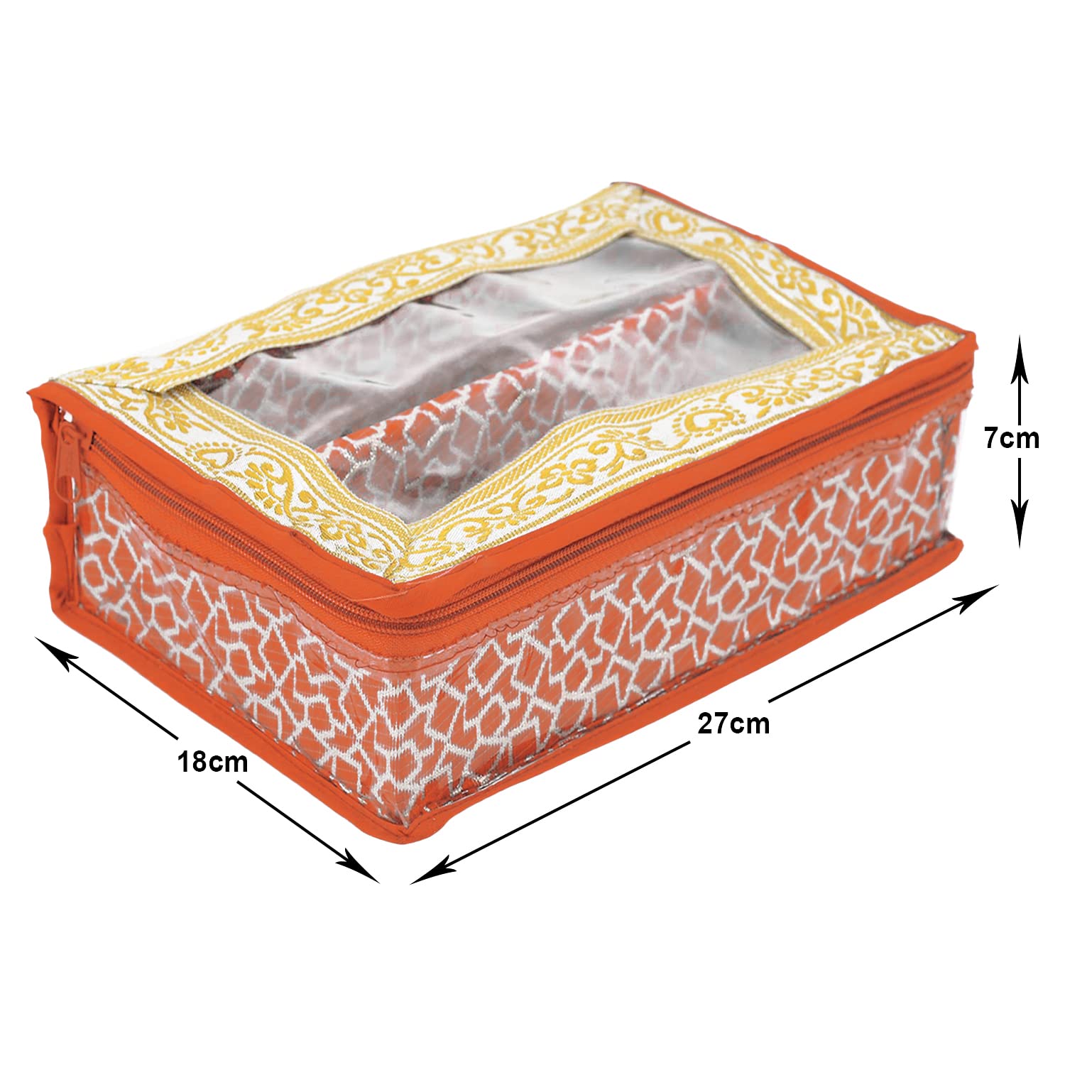 Heart Home storage box, organizer is ideal for storing bangles, watches, Bracelets, jewellery, small accessories etc. This is used to organize your bangles systematically and protect them from breakage so, keep delicate your bangles safely this is enough to keep your bangles and all needs. This bangle box is made of good quality laminated wooden and paperboard material so, this is very durable, long-lasting and very useful. There are 1 rods inside to hold bangles stiffly at a place and avoid unnecessary tangling and breaking. It gives them a strong and stable hold to keep the brittle and beautiful bangles safe. It can accommodate many bangles and helps you in organizing them safely. The box is strong and thus helps in holding the bangles to avoid any breaking and damage. The strong frame fits at any comfortable place and looks indeed beautiful due to its decoration on a strong frame. The three rods fitted into the box completely hold the bangles firmly and strongly. The transparency of the pouch makes it even more revealing and attractive. The see-through pouch helps you see and know what is there inside and what is missing. If anything goes missing or bangles are broken we can immediately take the required steps of either replacing or getting new ones. It always reminds us of the availability and unavailability. With elegant appearance and considerate design, this watch case is great for personal use, shop display and home decoration. Will be an ideal gift for birthday, valentine's day, wedding, Christmas and new yearDetailed Specifications: