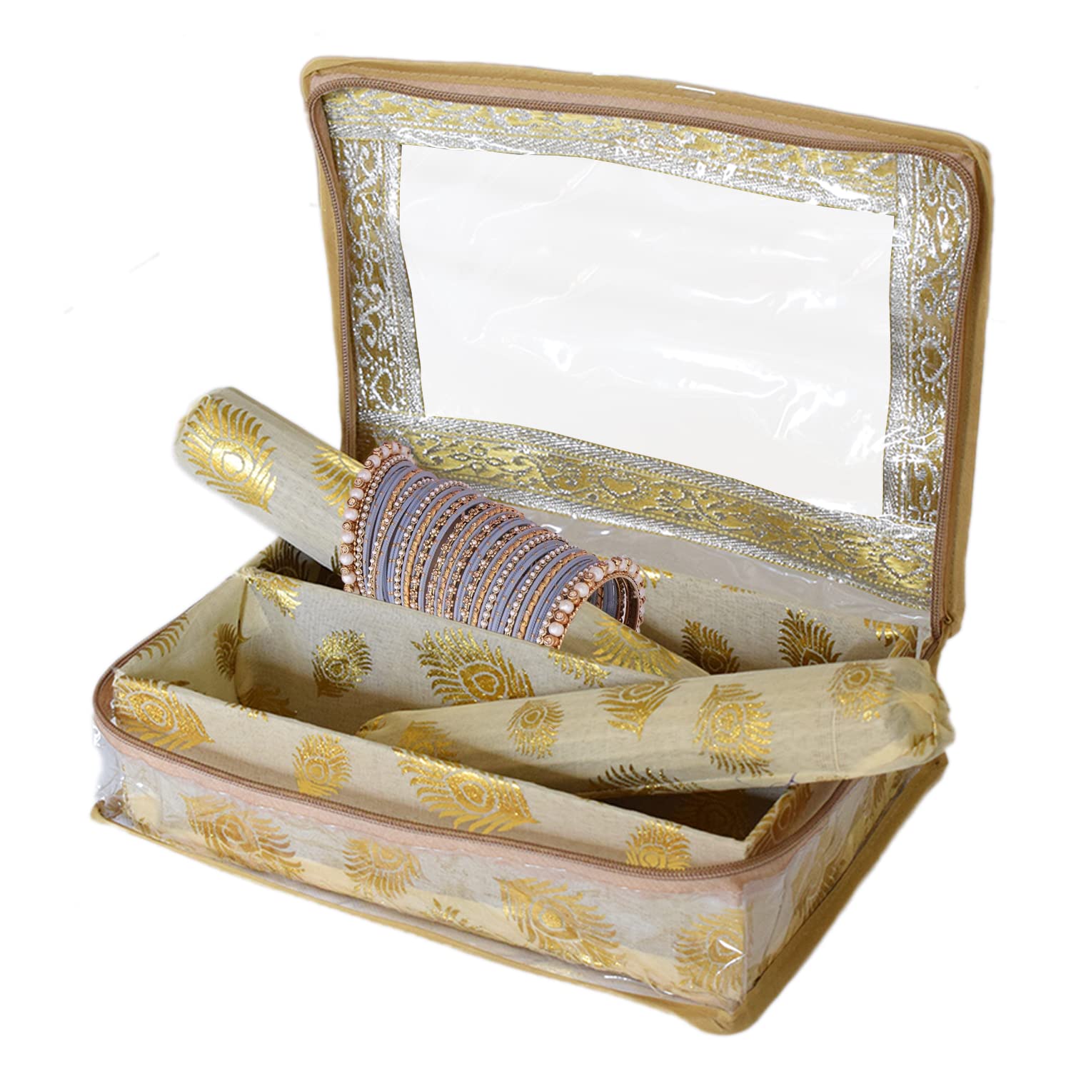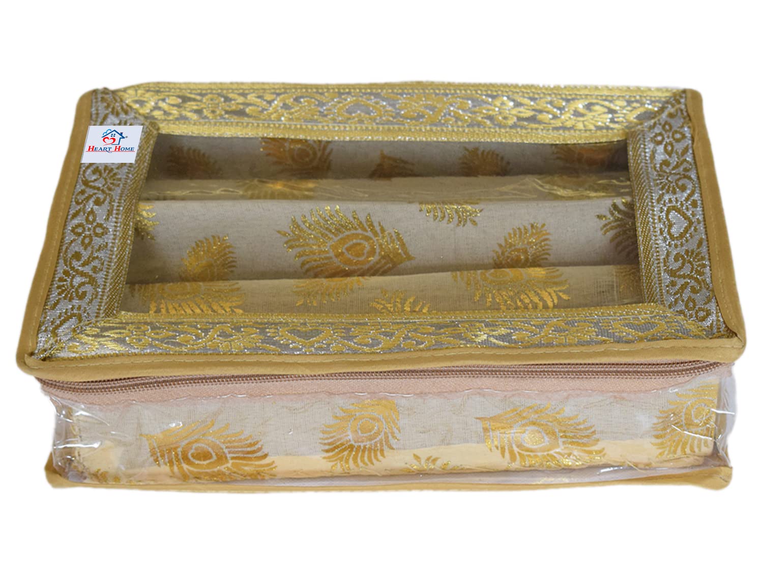 Heart Home storage box, organizer is ideal for storing bangles, watches, Bracelets, jewellery, small accessories etc. This is used to organize your bangles systematically and protect them from breakage so, keep delicate your bangles safely this is enough to keep your bangles and all needs. This bangle box is made of good quality laminated wooden and paperboard material so, this is very durable, long-lasting and very useful. There are 1 rods inside to hold bangles stiffly at a place and avoid unnecessary tangling and breaking. It gives them a strong and stable hold to keep the brittle and beautiful bangles safe. It can accommodate many bangles and helps you in organizing them safely. The box is strong and thus helps in holding the bangles to avoid any breaking and damage. The strong frame fits at any comfortable place and looks indeed beautiful due to its decoration on a strong frame. The three rods fitted into the box completely hold the bangles firmly and strongly. The transparency of the pouch makes it even more revealing and attractive. The see-through pouch helps you see and know what is there inside and what is missing. If anything goes missing or bangles are broken we can immediately take the required steps of either replacing or getting new ones. It always reminds us of the availability and unavailability. With elegant appearance and considerate design, this watch case is great for personal use, shop display and home decoration. Will be an ideal gift for birthday, valentine's day, wedding, Christmas and new yearDetailed Specifications: