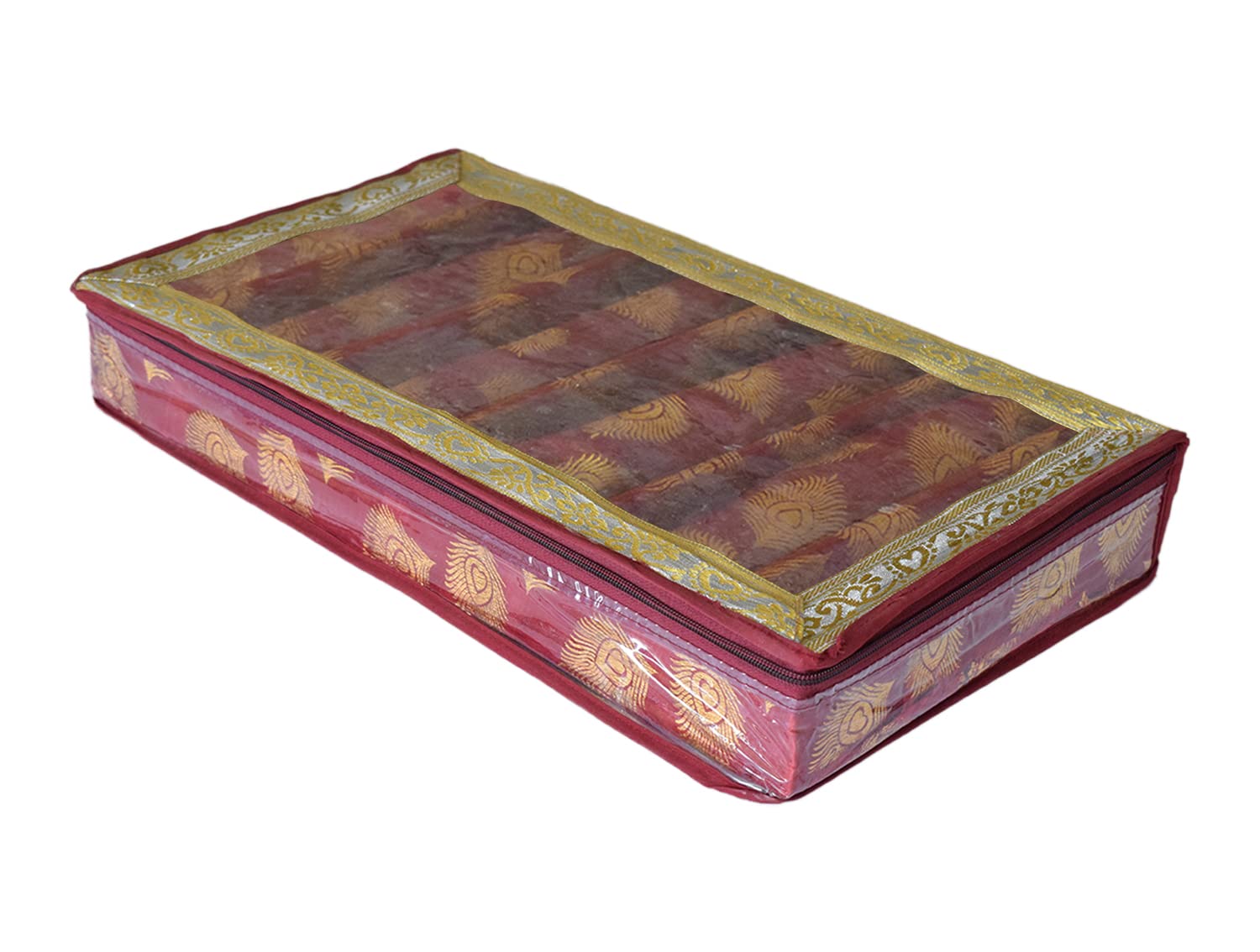 Heart Home storage box, organizer is ideal for storing bangles, watches, Bracelets, jewellery, small accessories etc. This is used to organize your bangles systematically and protect them from breakage so, keep delicate your bangles safely this is enough to keep your bangles and all needs. This bangle box is made of good quality laminated wooden and paperboard material so, this is very durable, long-lasting and very useful. There are 1 rods inside to hold bangles stiffly at a place and avoid unnecessary tangling and breaking. It gives them a strong and stable hold to keep the brittle and beautiful bangles safe. It can accommodate many bangles and helps you in organizing them safely. The box is strong and thus helps in holding the bangles to avoid any breaking and damage. The strong frame fits at any comfortable place and looks indeed beautiful due to its decoration on a strong frame. The three rods fitted into the box completely hold the bangles firmly and strongly. The transparency of the pouch makes it even more revealing and attractive. The see-through pouch helps you see and know what is there inside and what is missing. If anything goes missing or bangles are broken we can immediately take the required steps of either replacing or getting new ones. It always reminds us of the availability and unavailability. With elegant appearance and considerate design, this watch case is great for personal use, shop display and home decoration. Will be an ideal gift for birthday, valentine's day, wedding, Christmas and new yearDetailed Specifications: