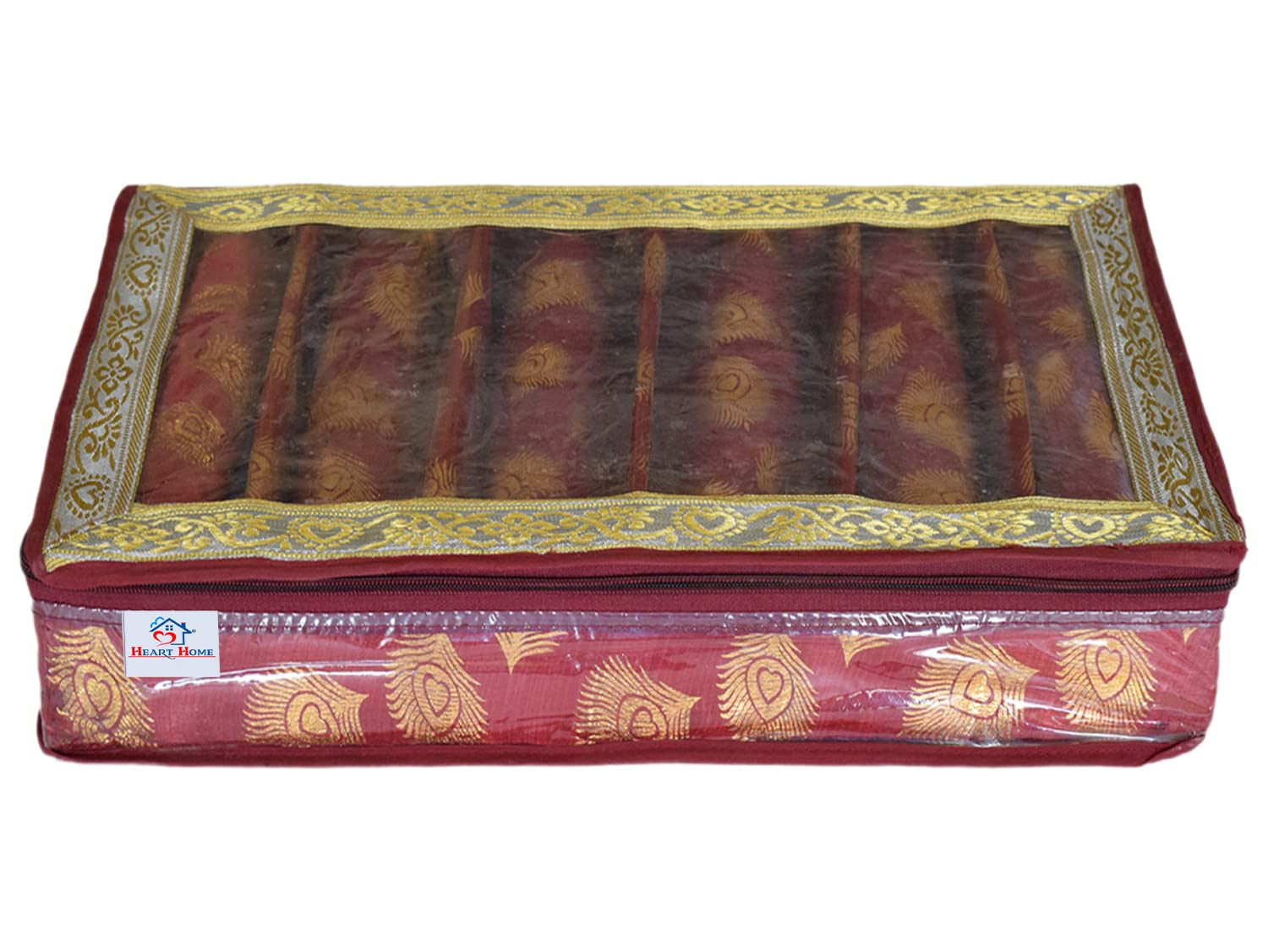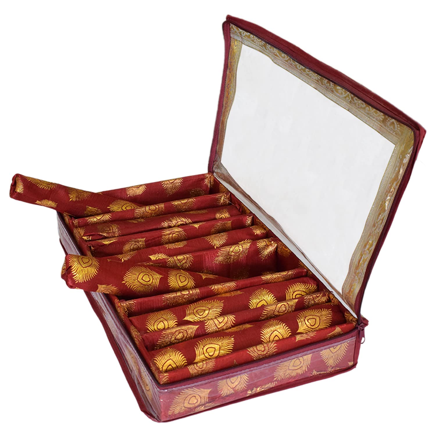 Heart Home storage box, organizer is ideal for storing bangles, watches, Bracelets, jewellery, small accessories etc. This is used to organize your bangles systematically and protect them from breakage so, keep delicate your bangles safely this is enough to keep your bangles and all needs. This bangle box is made of good quality laminated wooden and paperboard material so, this is very durable, long-lasting and very useful. There are 1 rods inside to hold bangles stiffly at a place and avoid unnecessary tangling and breaking. It gives them a strong and stable hold to keep the brittle and beautiful bangles safe. It can accommodate many bangles and helps you in organizing them safely. The box is strong and thus helps in holding the bangles to avoid any breaking and damage. The strong frame fits at any comfortable place and looks indeed beautiful due to its decoration on a strong frame. The three rods fitted into the box completely hold the bangles firmly and strongly. The transparency of the pouch makes it even more revealing and attractive. The see-through pouch helps you see and know what is there inside and what is missing. If anything goes missing or bangles are broken we can immediately take the required steps of either replacing or getting new ones. It always reminds us of the availability and unavailability. With elegant appearance and considerate design, this watch case is great for personal use, shop display and home decoration. Will be an ideal gift for birthday, valentine's day, wedding, Christmas and new yearDetailed Specifications:
