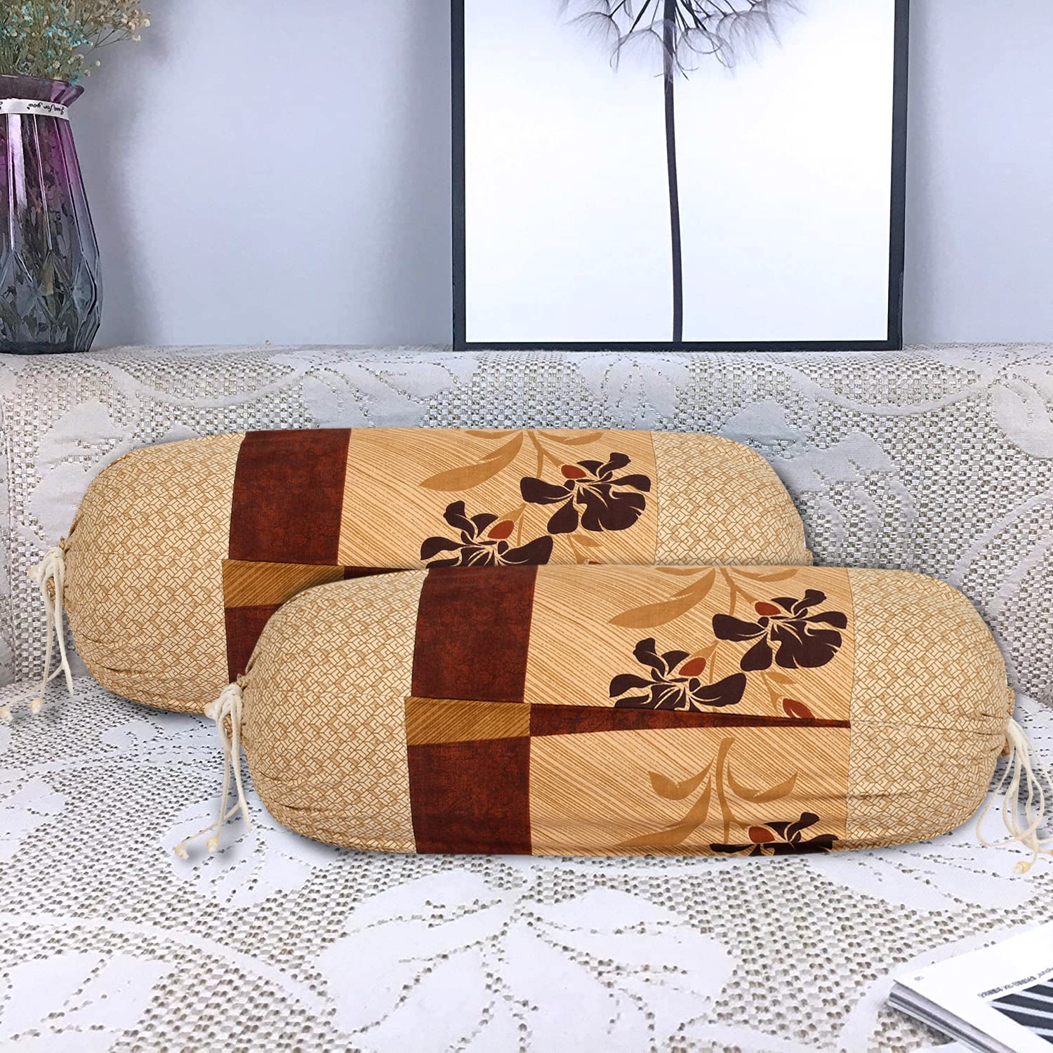 Heart Home premium cotton bolster covers feature intricate cotton weaving and a thread count of 144 making them soft and durable. The matte finish and solid colour of these bolster cases lend versatility, allowing you to mix and match with a variety of bedsheets. With a neat hemming a Center the edges, these covers give an elegant look to your home décor. These bolster cover are made from the finest Cotton to ensure softness, breath ability and wrinkle resistance. The Cotton for a luxuriously soft, silky smooth feel, giving you the best, most refreshing night's sleep you've ever had on any thread count The bolster cover set of 2 comes, making them an ideal pair for your bed. The covers are also hemmed at the edges, thus giving them a neat finish and adding to the visual appeal of your bolsters. It includes drawstrings for a customized adjustment. This enables you to wrap the cover a Center the bolster pillow in a compatible and secure fit.Detailed Specifications: