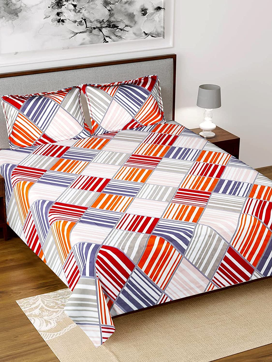 Double Bedsheet A good night's sleep starts with soft, cozy sheets that let your body breathe. Bedsheets can make (or break) your sleeping experience. Sheets envelop your body while you sleep and can either contribute to a better night’s sleep or distract from it. The texture, feel, warmth, and moisture wicking capabilities all contribute to your comfort while you doze. Material Cotton is an excellent choice for bed sheets, as this material is soft and comfortable. Being machine-washable and breathable, it allows for easy maintenance and a comfy night’s rest, no matter the season. The high-quality material, coupled with the weave, which lends the sheet softness, longevity and also affects the appearance, makes for a high-quality sheet. Overview got a bed for you - want to drape it with something spectacular - our poly-cotton double bed sheet with two pillow covers is a perfect choice. The floral design in white and Purple is going to liven up your home decor and give you a very peaceful; serene at home helping you relax every day. This type of fabric keeps it shape and colour and it doesn't shrink. Durability this exquisite double bed sheet with two pillow covers is made of this fabric which is a result of combining polyester with cotton. This is a sturdy material which is long-lasting. Poly-cotton is well known for holding the dye firmly and hence forth keeping the decor intact for longer.Detailed Specifications: