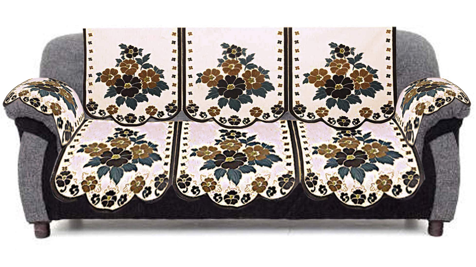 | Included Components : | Package Content 3 long back cover for 3 seater sofa 3 long seat cover for 3 seater sofa 2 seat back cover for single seat sofa 2 seat cover for single seat sofa 6 Pc Arm rest cover |