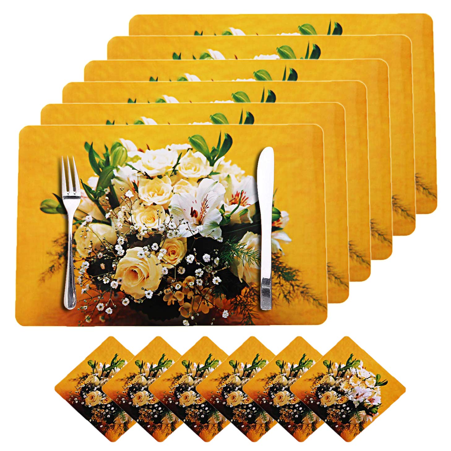 Included Components : | PVC 6 Piece Dining Table Placemat Set with Tea Coasters |