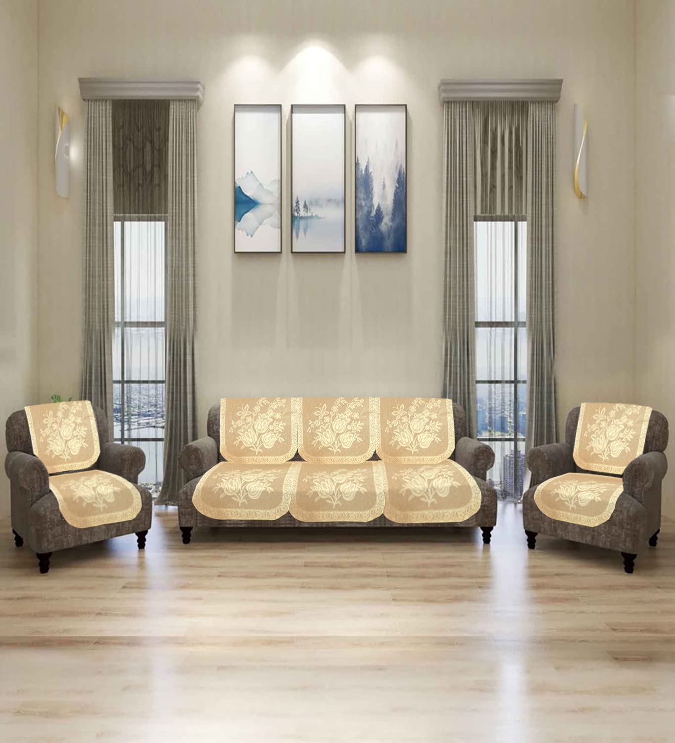 Heart Home offers you a designer sofa cover that enhance the beauty of the furniture while ensuring protection to your furniture. Designs and color combination of this sofa cover not only makes your living room look very elegant and attractive. It also protects your furniture from strains and scratches. It made of cotton fabric that is eco-friendly, durable and stylish giving you soft and comfortable feel. ANTI-BACTERIA, WRINKLE RESISTANT AND NO PILLING! Anti-mite processsed slipcovers are highly safety for kids and pets. Naturally dyed with no color shading or fading done.This fabric is used to make this sofa cover is very easy to wash and clean. it comes in 6 pieces i.e. 1 Sofa Seat Cover (74 cm x 61 cm), 1 Sofa Back Cover (74 cm x 61 cm), 2 Chair Seat Cover (178 cm x 74 cm), 2 Chair Back Cover (178 cm x 74 cm)Detailed Specifications: