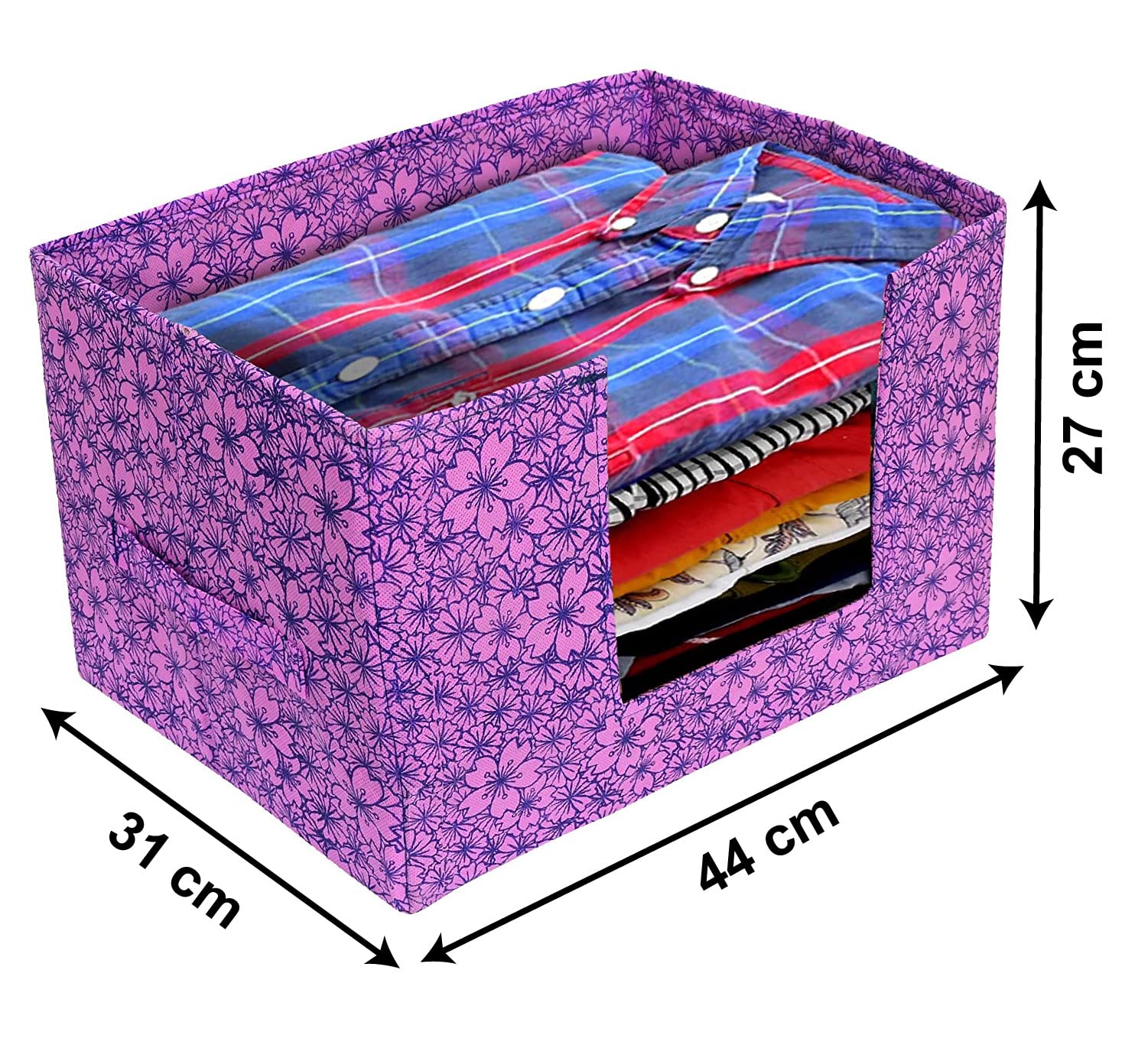 Keep playroom, bedroom and closets organized with Heart Home Flower Printed colorful folding storage bins. These fabric storage bin are a fun and creative way to organize; toys, clothes, blankets, towels and so much more.These bins are built to be easy and functional for your home. Bins have reinforced handles on two sides for easy carrying and access, storage bins ship flat with a cardboard insert to be placed at the bottom to give shape and they have cardboard sides to add structure. This storage comes with an open design for easy access. If you really need to stack them to save room, we recommend filling the bottom box with infrequently used items before stacking. Made of high-quality non-woven fabric with strong durable stitching, anti-wrinkle-free, lightweight. It has been tested for a long time using. Space-saving design, This box is foldable for space-saving, easy to set up and convenient to carry. Can be folded when not in use.Detailed Specifications: