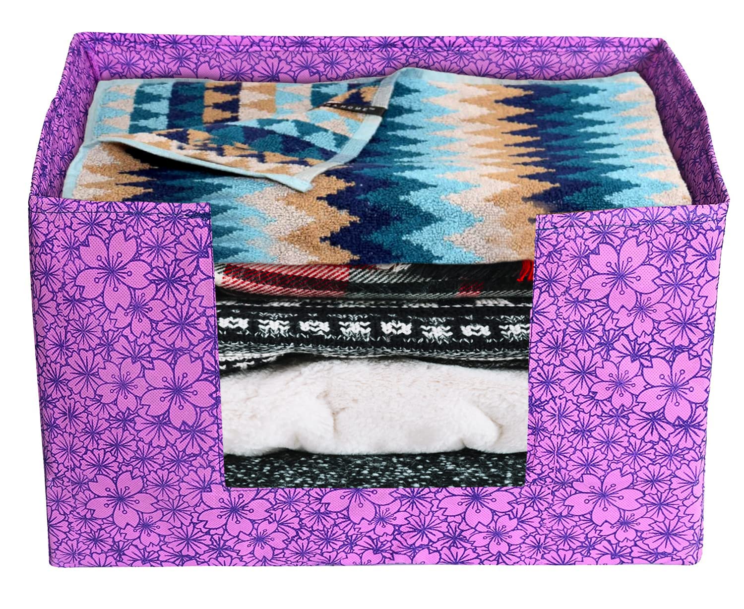 Keep playroom, bedroom and closets organized with Heart Home Flower Printed colorful folding storage bins. These fabric storage bin are a fun and creative way to organize; toys, clothes, blankets, towels and so much more.These bins are built to be easy and functional for your home. Bins have reinforced handles on two sides for easy carrying and access, storage bins ship flat with a cardboard insert to be placed at the bottom to give shape and they have cardboard sides to add structure. This storage comes with an open design for easy access. If you really need to stack them to save room, we recommend filling the bottom box with infrequently used items before stacking. Made of high-quality non-woven fabric with strong durable stitching, anti-wrinkle-free, lightweight. It has been tested for a long time using. Space-saving design, This box is foldable for space-saving, easy to set up and convenient to carry. Can be folded when not in use.Detailed Specifications: