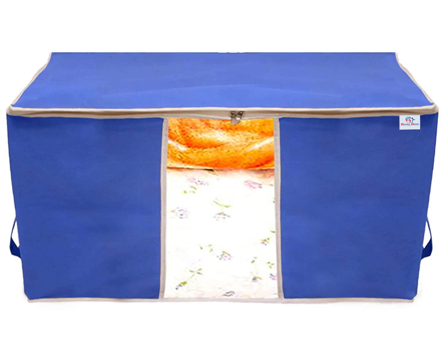 Heart Home Under bed storage bag is made of non-woven material so this is very durable, long-lasting and multipurpose. This is used to store blankets, clothes, quilts, coats and other garments for long periods of time. This can be folded back when not in use and it collapses flat for saving precious storage space. This has two way zipper and two soft grab handles makes it easy to pull out or replace from under the bed. This has a large transparent sheet by which you can see what is inside the under bed bag remotely. This is the best space saver product.Detailed Specifications: