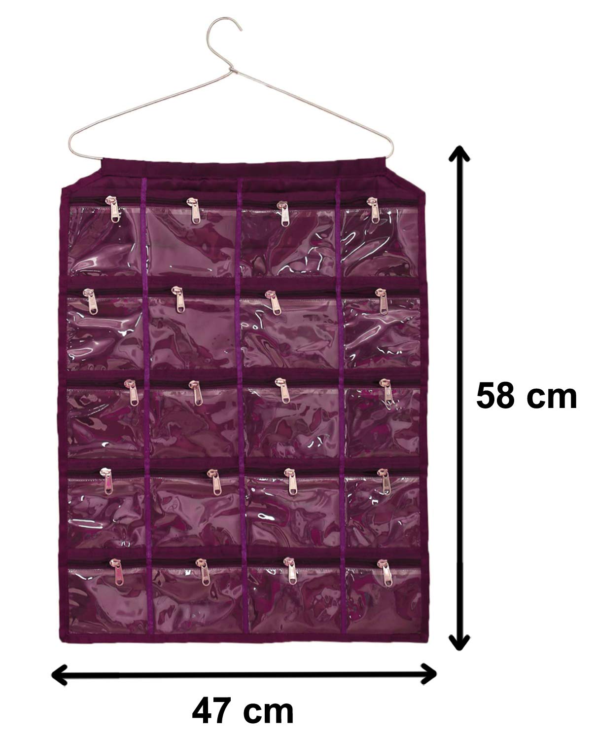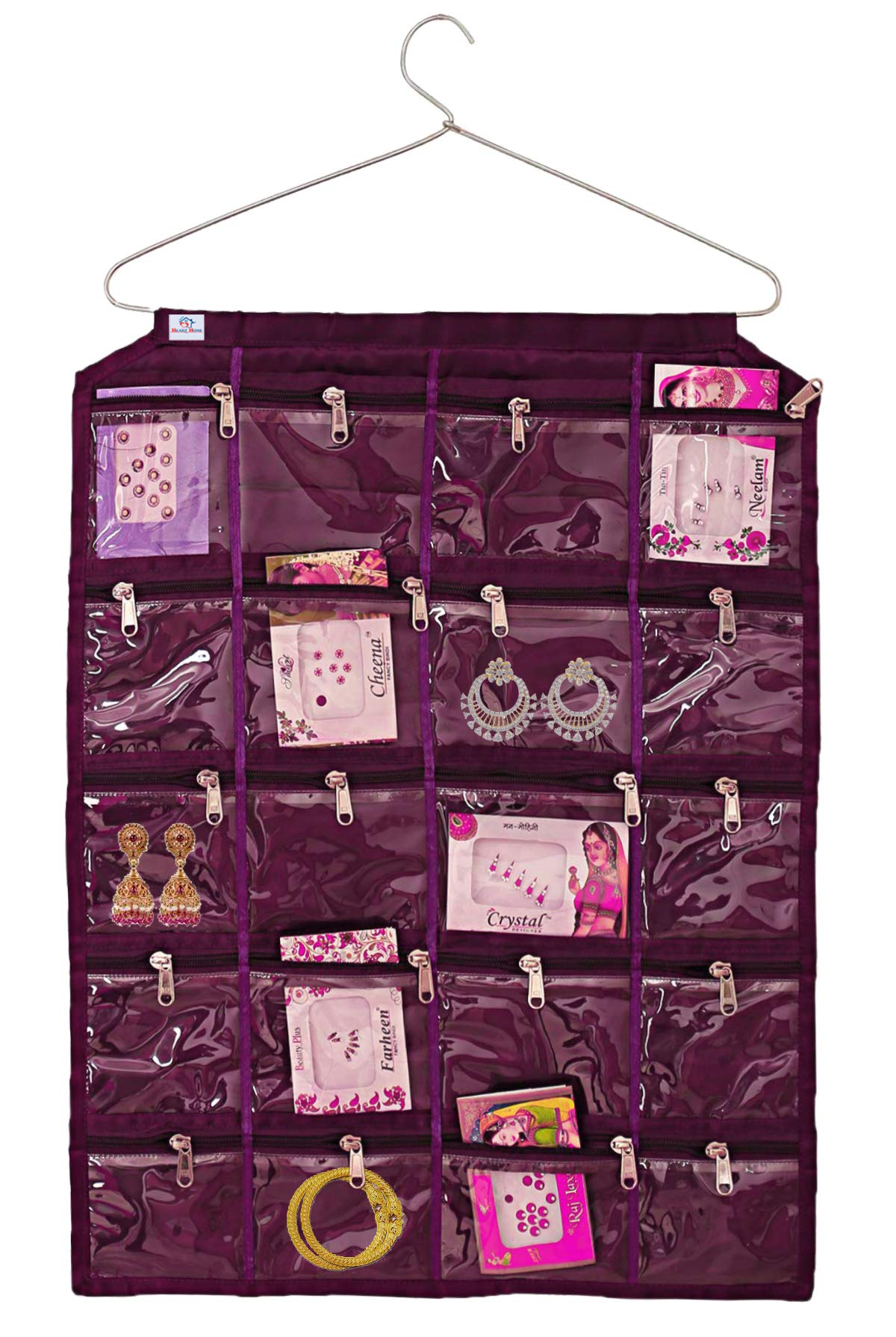 Material:Made of satin and clear PVC window. Organizer for Earrings,Pendants,Necklace,Bracelet, Ring, Watches,Chains,Pearl Jewellery,Accessory,Head rope,Headband or nail polish, cuffs, makeup brushes, Eye shadow etc. Transparent PVC window:easily view and protect items,endurable and good-looking,The hanging bag display Jewellery well and opening pockets for convenient to pick something to wear with an outfit, takes up just as much space as a Jacket hanging in the closet . Easy to Pick: No need to took the Jewellery out for selection; it's clear enough that you can easily look and guess through,The hanging bag With a hanger is convenient to put it anywhere, it can rolls up for easy carry, perfect for travel,Convenient to carry your Jewellery ! Comes with 20 Pocket: No need to put everything altogether and then scatter them throughout the room in the quest to find the little rings or earrings. You can put them in separate transparent pockets and select the one as they are visible.Kuber Industries is a customer-loved brand that brings you everything you need to make a house a home. Right from nifty storage solutions to smart kitchen essentials, our products are known for their premium and durable quality.
