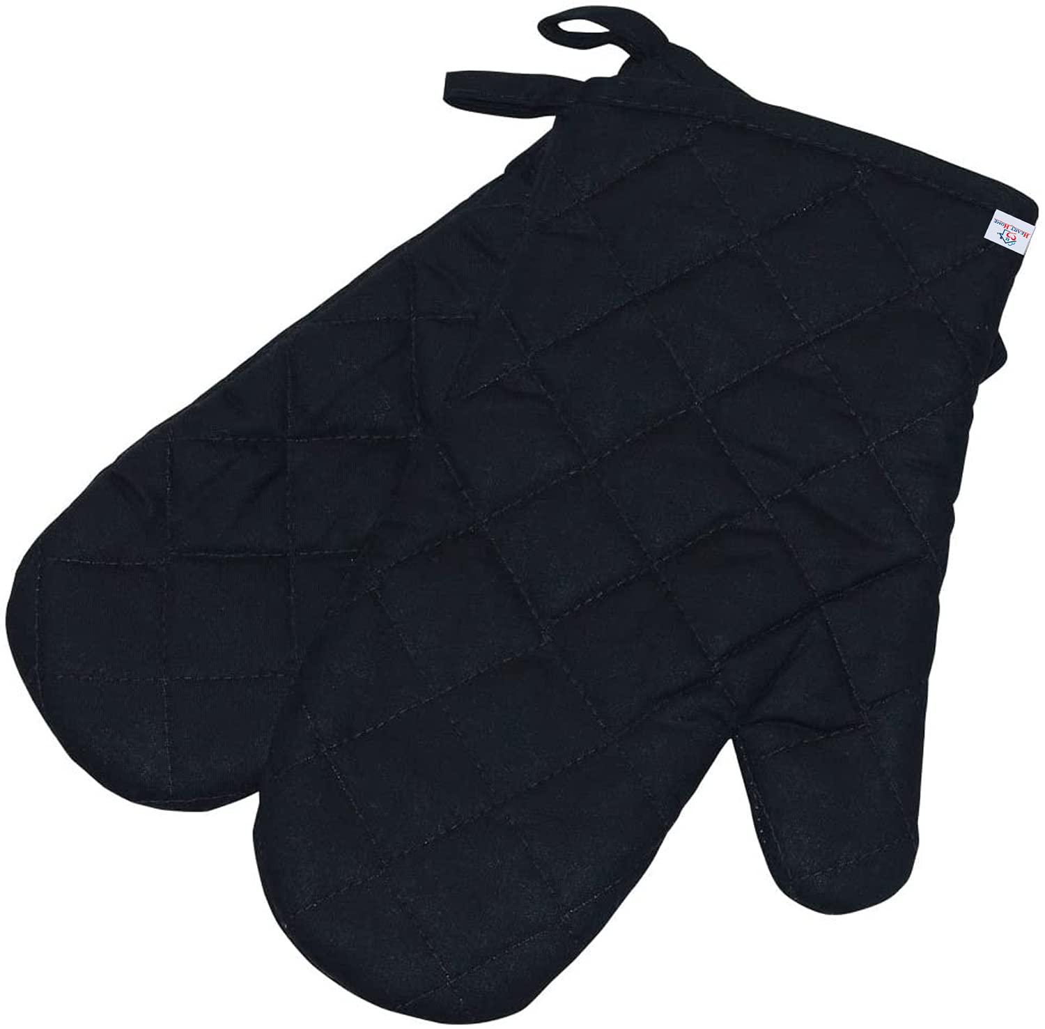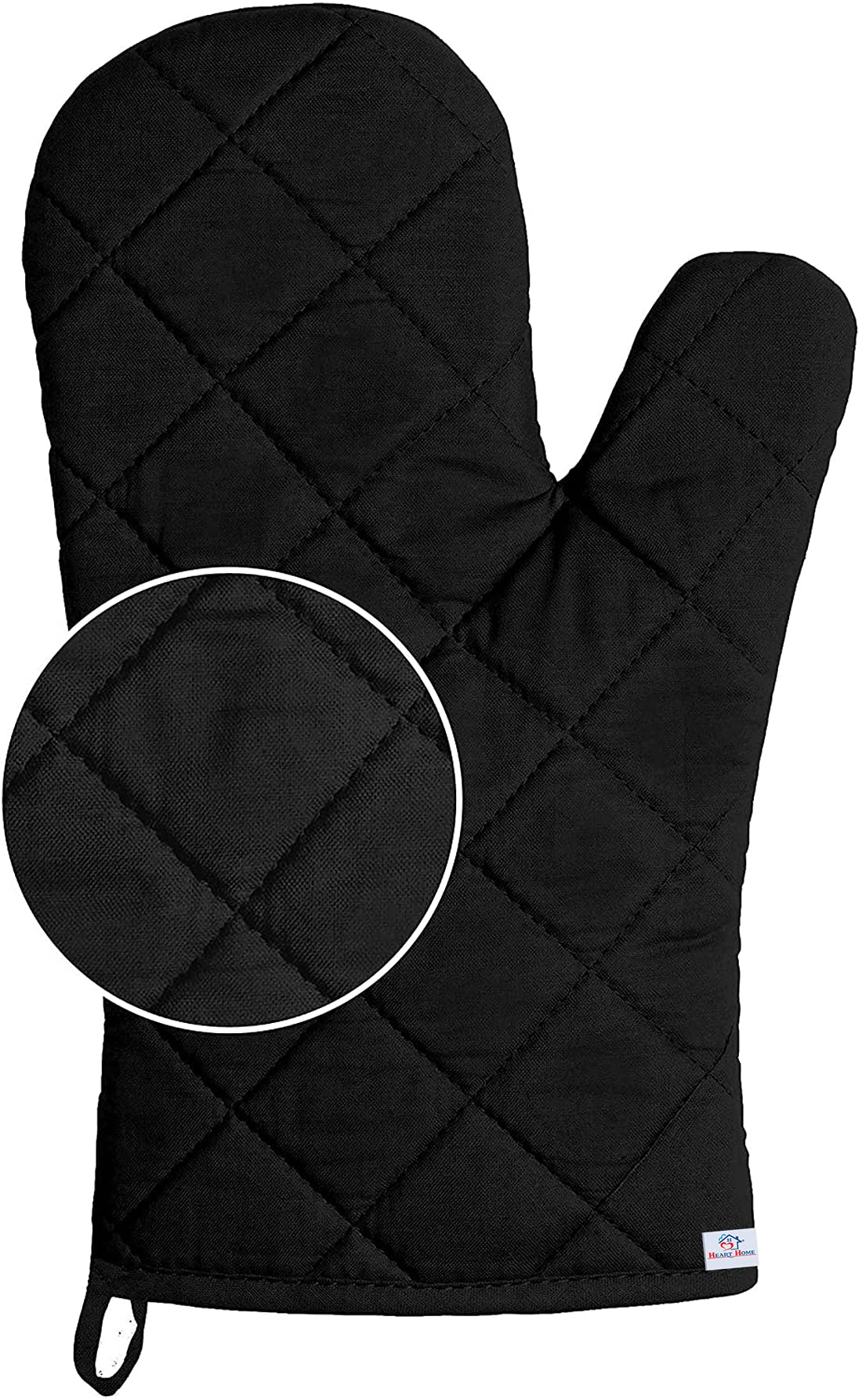 Two pack oven mitts Which Is Best For Handling Heat or Cold. Heat Resistant Pad Provides Effective Insulations. Fit for Daily Usage: House Kitchen, Cooking Schools, Restaurant, Catering Business, Hotel, Food Handling or Production Kitchen, Banquet, Catering Business, Etc. These cotton oven mitts allow you to Handle cookware safely. Comfort Premium gloves are made of pure cotton fabric and quilt which makes the oven mitts soft and they're cushioned for added comfort. A perfect fit for him or her, these oven mitts size to fit everyone. Keep them within easy reach with the loops on the bottoms of the gloves which allow them to be hung on a hook in between uses.Detailed Specifications: