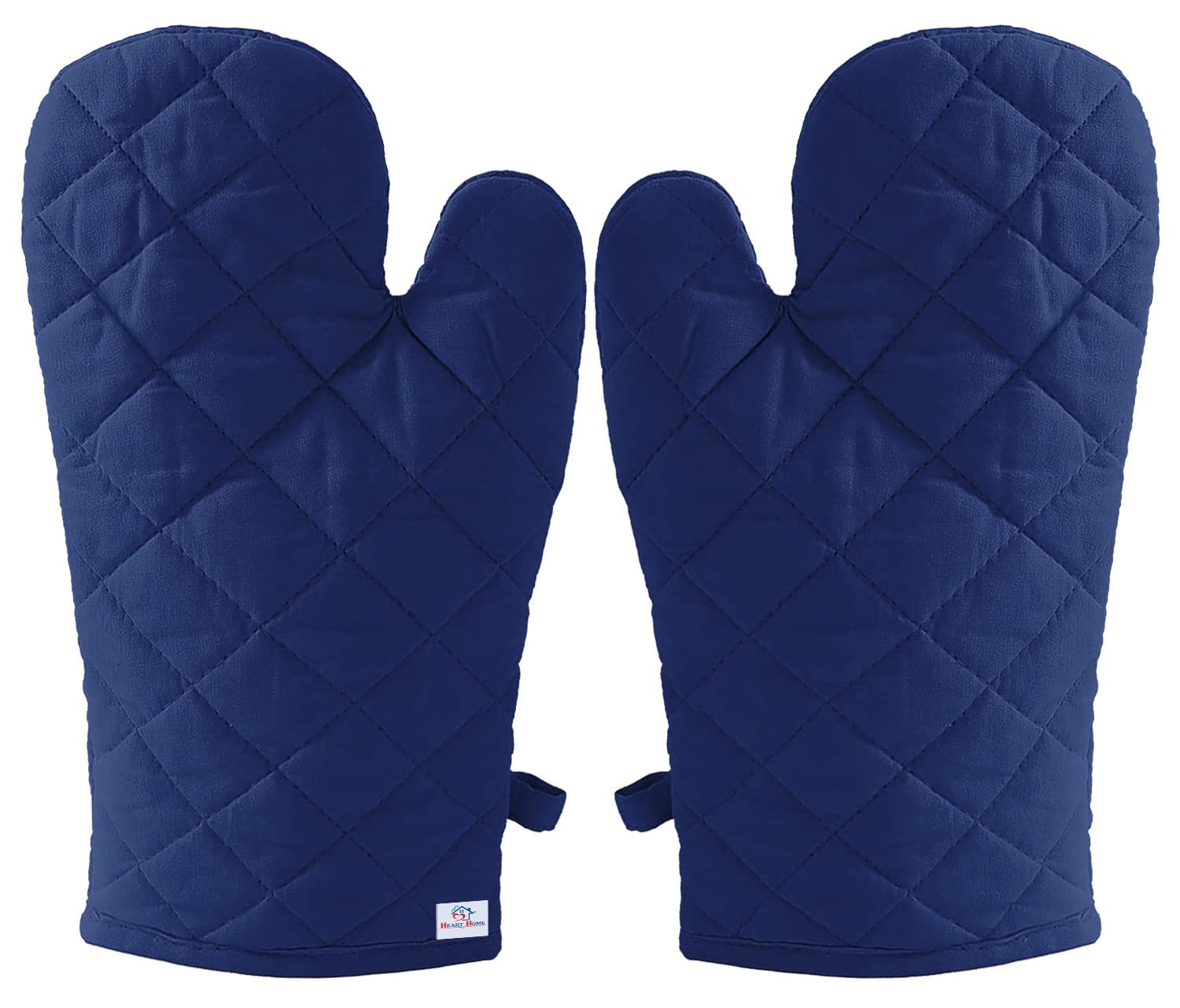 Two pack oven mitts Which Is Best For Handling Heat or Cold. Heat Resistant Pad Provides Effective Insulations. Fit for Daily Usage: House Kitchen, Cooking Schools, Restaurant, Catering Business, Hotel, Food Handling or Production Kitchen, Banquet, Catering Business, Etc. These cotton oven mitts allow you to handle cookware safely. Comfort Premium gloves are made of pure cotton fabric and quilt which makes the oven mitts soft and they're cushioned for added comfort. A perfect fit for him or her, these oven mitts size to fit everyone. Keep them within easy reach with the loops on the bottoms of the gloves which allow them to be hung on a hook in between uses.Detailed Specifications: