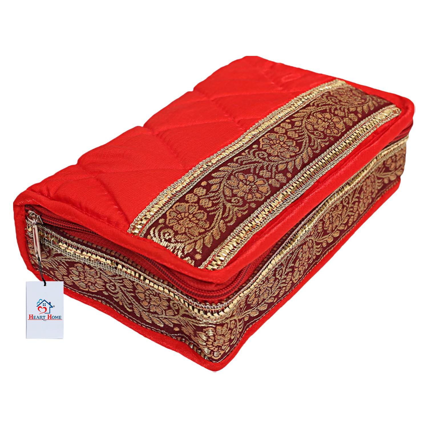 Heart Home has always been coming up with innovative products to take care of your family, we offer a wide range of our products which inspires the customers to choose from various options. Maybe you all must have liked our products. That's why we are continuously providing quality products to maintain the satisfaction of the customers, in this sequence we are continuously moving forward. Similarly, we present you the jewelry kit that comes with 5 transparent pouches to keep your expensive jewelry safe and secure. This kit is equipped with gota lace which is a unique one, which can be used to store necklaces, earrings, bracelets, rings and much more, and can be used while traveling and carrying your heavy jewelery with you can be done. Nice option that will help you to take apart the cover. Jewelry kits are commonly used for travel or to keep jewelry organized at home.Detailed Specifications: