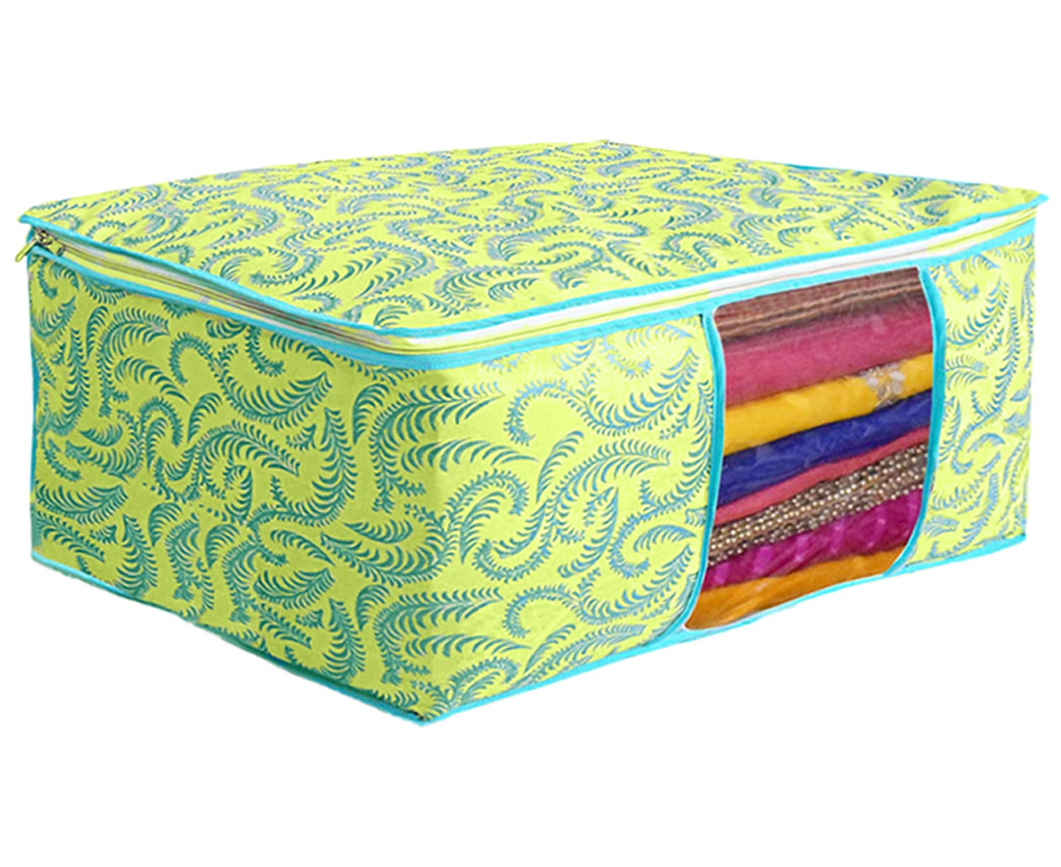 Heart Home saree & blouse organizer perfect to keep your heavy sarees, blouse & other cloth safe and maintain their elegance and new look, the non-woven large saree/blouse cover bag with transparent window not only helps you keep your cloth safe from external environment but also ensures that the quality of the saree/blouse is maintained. It is the perfect solution to keep expensive sarees/blouses and other garments in one bag to avoid dust, insects and moisture. It comes with two zippers and a transparent window that eases overall use of the bag. It helps keeping it dust free and best option to use while travelling.Detailed Specifications: