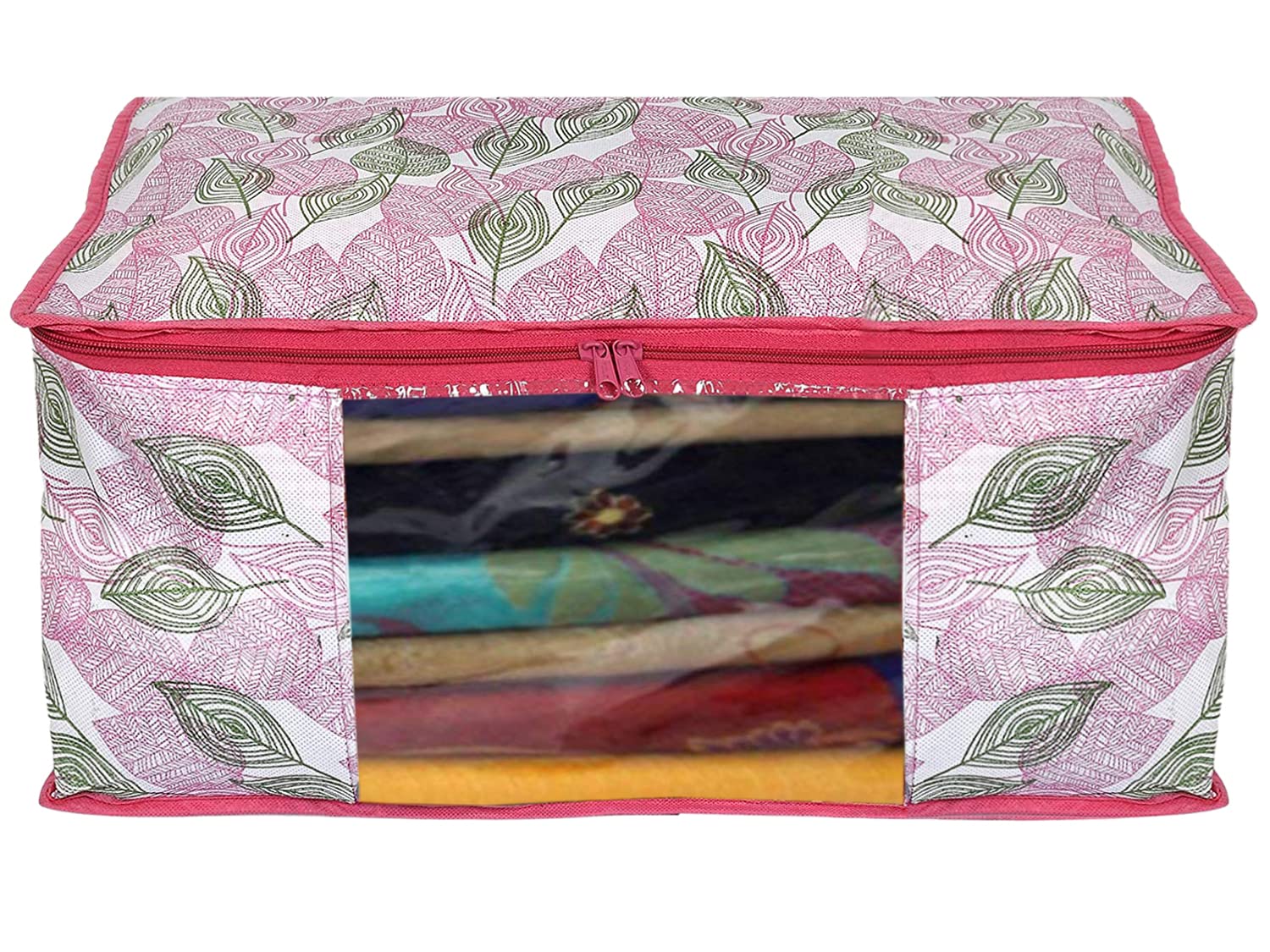 Heart Home saree/cloth organizer perfect to keep your heavy sarees & other cloth safe and maintain their elegance and new look, the non-woven large saree cover bag with transparent window not only helps you keep your sarees safe from external environment but also ensures that the quality of the saree is maintained. Built and designed with three different layers, it comes with two zippers and a transparent window that eases overall use of the bag. Uniquely designed to prevent kept clothes from insects, the bag also prevents your sarees from moisture and dust.Detailed Specifications: