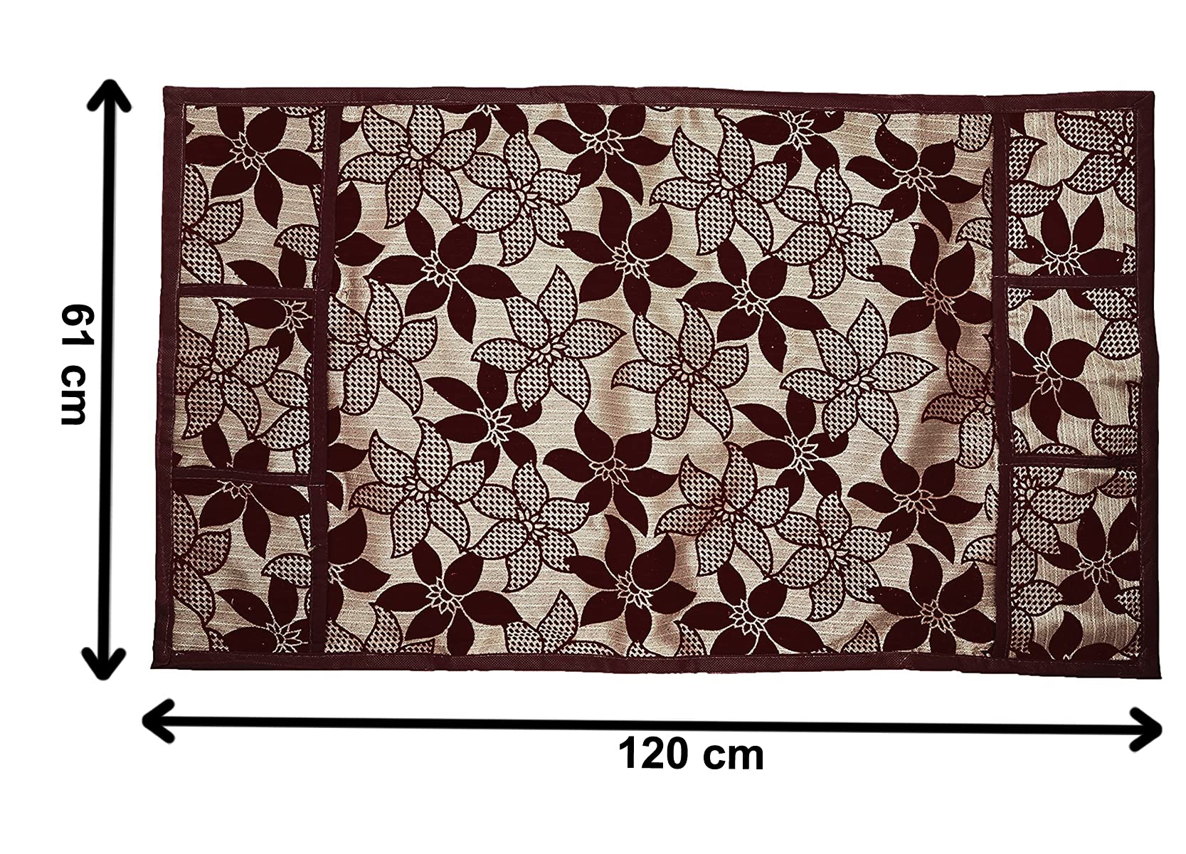 Made in Velvet material, Easily Hand Washable. Exclusive Product & we assure you. You like this product. .The Product Dimension in LxW: in cms(120x61). It Comes with 6 utility pockets. on each side to increase its worthiness. .The color combination & design of the cover is praiseworthy and looks very attractive & elegant and will enhance the beauty of your kitchen/room. It is resistant to rough handling and is easy to wipe and clean, and will protect your precious kitchen companion surface from everyday scratches, wear and tear, stain, dust and other particles.Detailed Specifications: