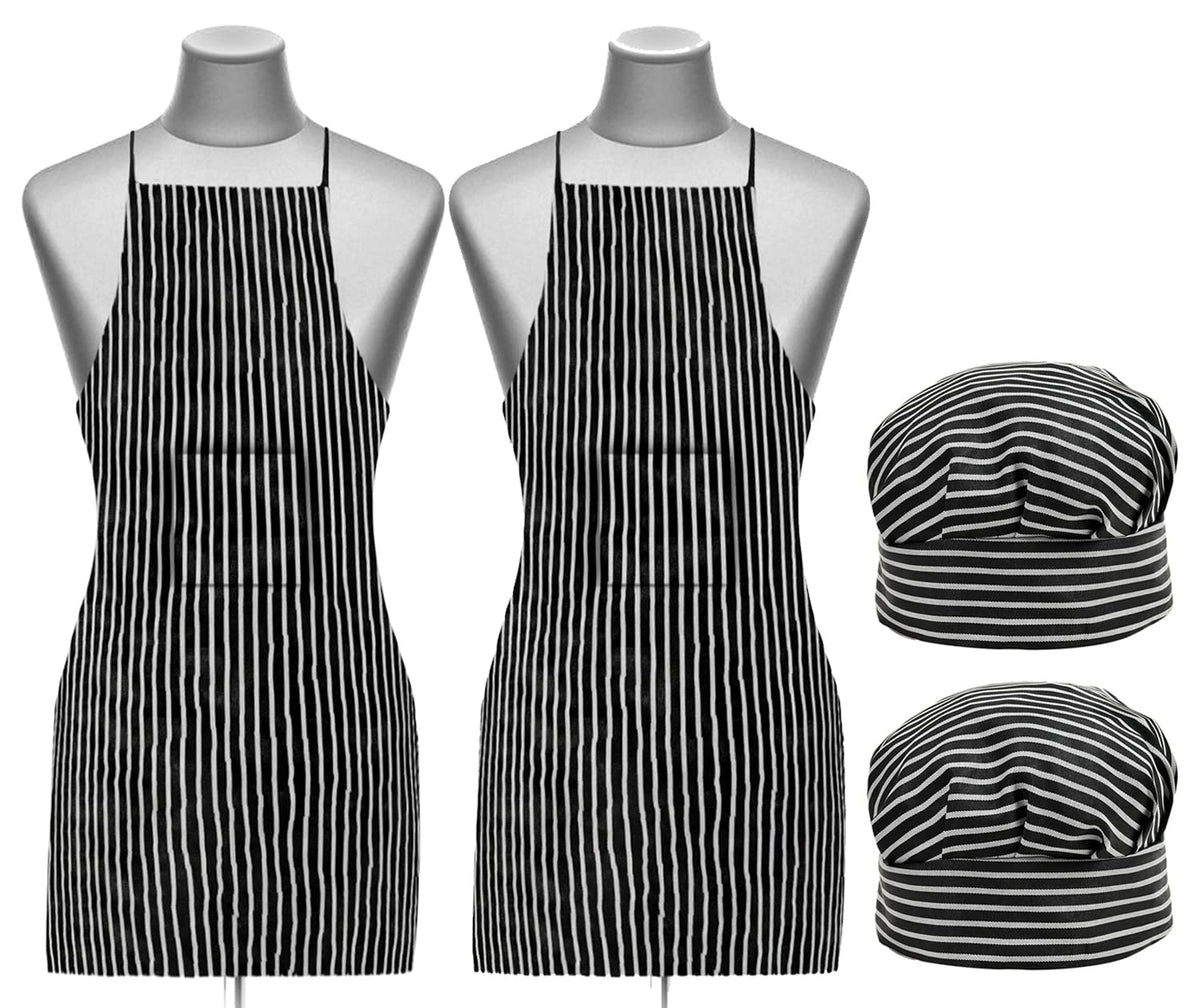 Heart Home cooking apron & cap set ideal for catering colleges, schools, restaurants, pubs, cafes, commercial, kitchens, hotels, baking party etc. It made of cotton material, they are lightweight, breathable and not easy to be tear, moisture and withstand high temperature. Apron superior coverage that keeps your clothes safe from spills and splatters. The front pocket of the apron gives you a place to hold onto seasoning packets, meat thermometer, grill slips and recipe cards. Cooking cap come with a high-elastic elastic design,definitely one size fits all, it fits well on your head and won't fall off easily. The whole design is to be built around comfort and functionality. This set is machine-washable, fade-proof, and resists wrinkles and shrinkage. Made from a long-wearing poly-cotton blend, this commercial-grade yarn dyed fabric has been treated with a soil release finish to keep it looking crisp and professional.Detailed Specifications: