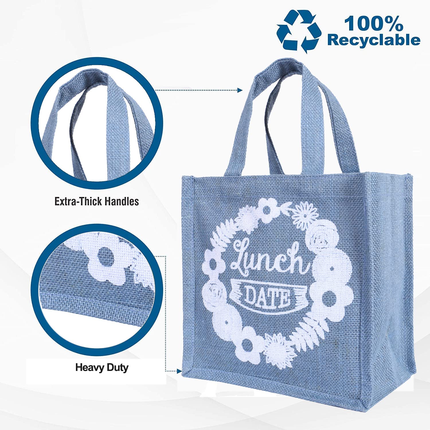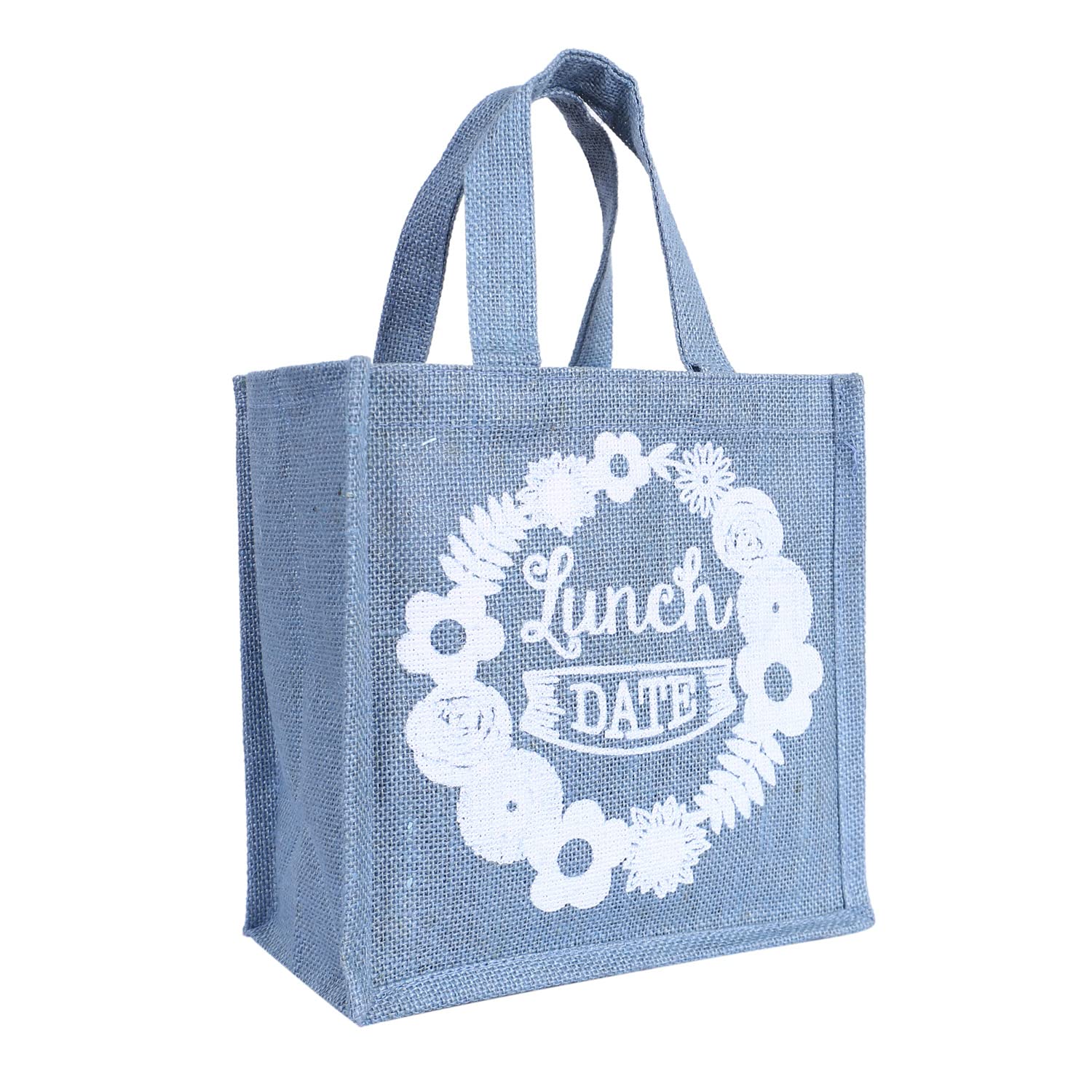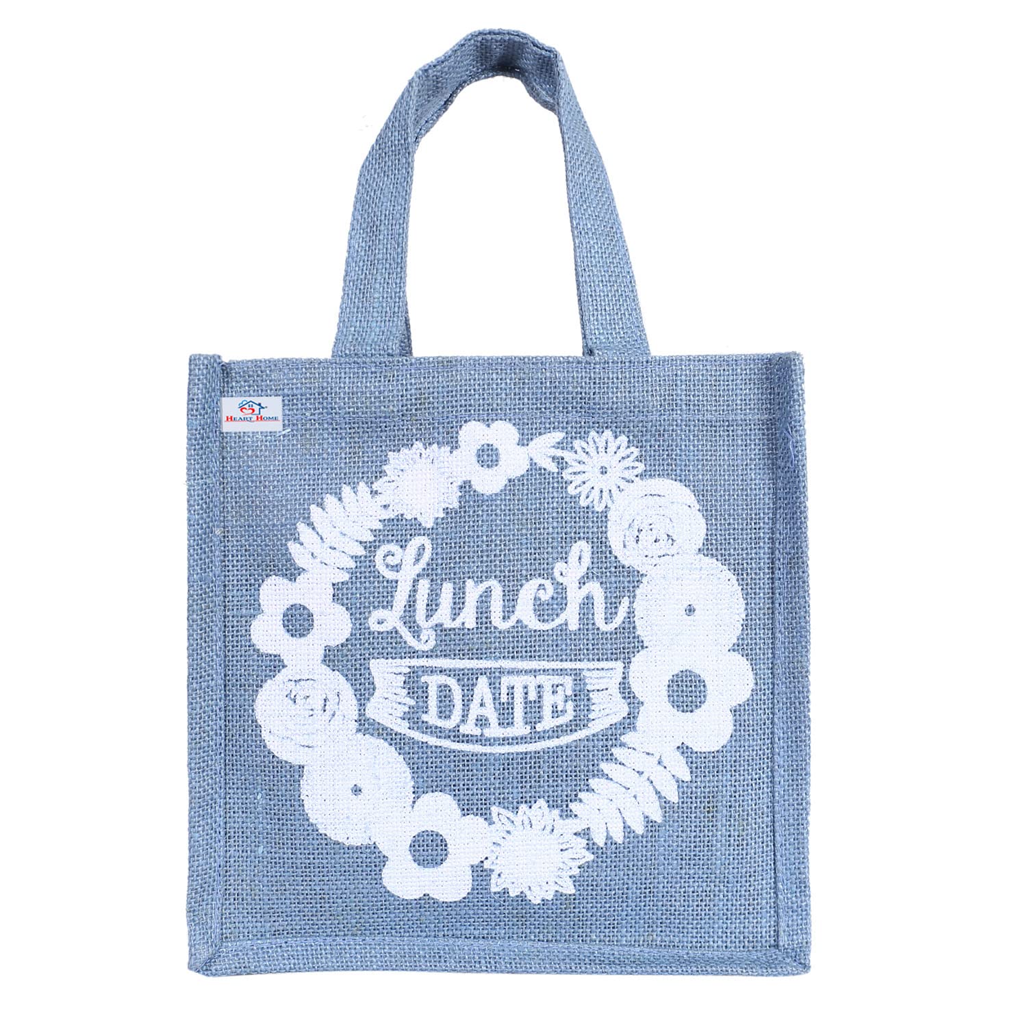 Heart Home Lunch Bag|Reusable Jute Fabric Tote Bag|Lunch Date Print Tiffin Carry Hand Bag with Handle for Office,School,Gift (Gray)