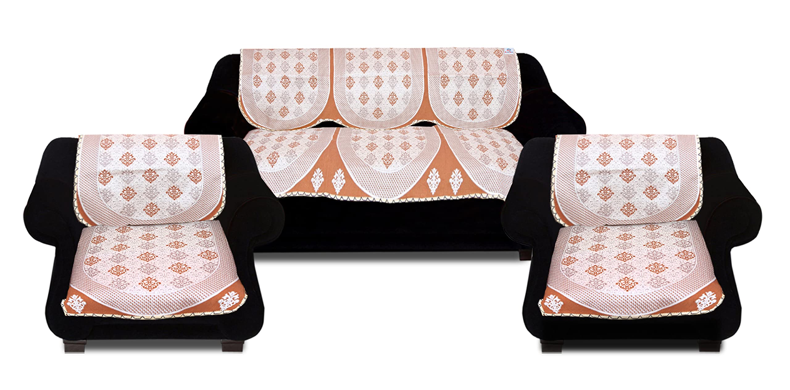Heart Home offers you a designer sofa cover that enhance the beauty of the furniture while ensuring protection to your furniture. Designs and color combination of this sofa cover not only makes your living room look very elegant and attractive. It also protects your furniture from strains and scratches. This fabric is used to make this sofa cover is very easy to wash and clean.Detailed Specifications: