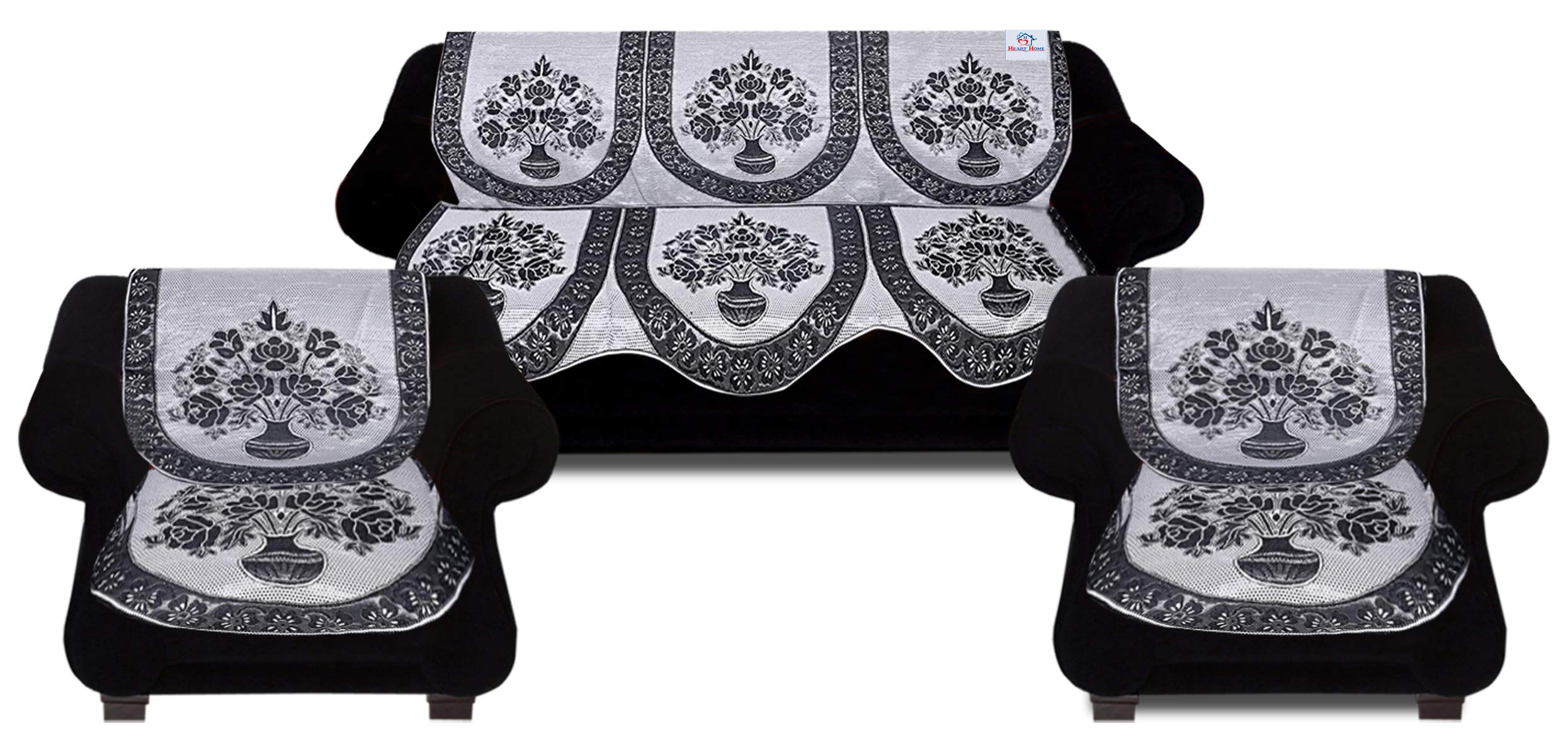 Heart Home offers you a designer sofa cover that enhance the beauty of the furniture while ensuring protection to your furniture. Designs and color combination of this sofa cover not only makes your living room look very elegant and attractive. It also protects your furniture from strains and scratches. This fabric is used to make this sofa cover is very easy to wash and clean.Detailed Specifications:
