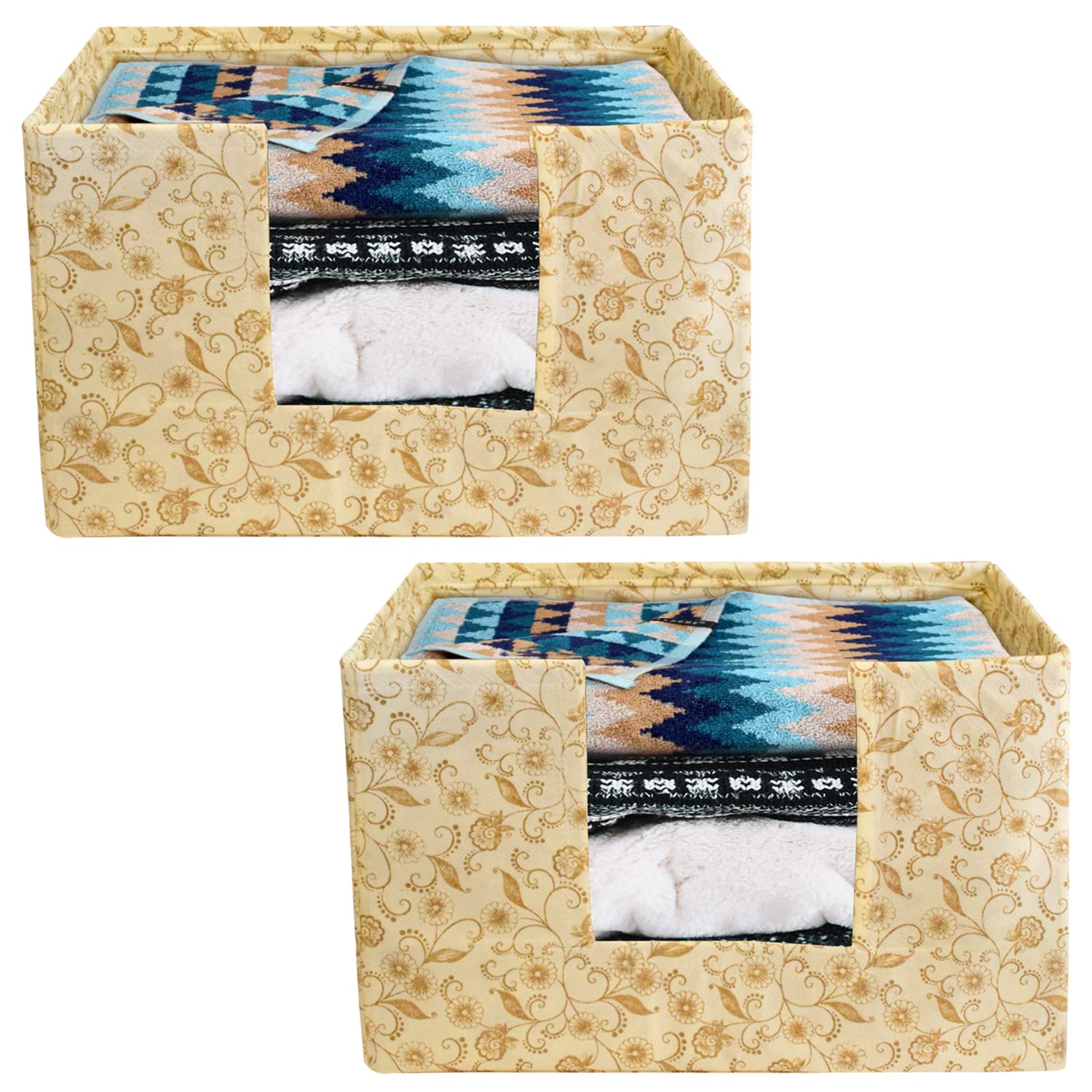 Keep playroom, bedroom and closets organized with Heart Home Metallic Flower Printed colorful folding storage bins. These fabric storage bin are a fun and creative way to organize; toys, clothes, blankets, towels and so much more.These bins are built to be easy and functional for your home. Bins have reinforced handles on two sides for easy carrying and access, storage bins ship flat with a cardboard insert to be placed at the bottom to give shape and they have cardboard sides to add structure. This storage comes with an open design for easy access. If you really need to stack them to save room, we recommend filling the bottom box with infrequently used items before stacking. Made of high-quality non-woven fabric with strong durable stitching, anti-wrinkle-free, lightweight. It has been tested for a long time using. Space-saving design, This box is foldable for space-saving, easy to set up and convenient to carry. Can be folded when not in use.Detailed Specifications: