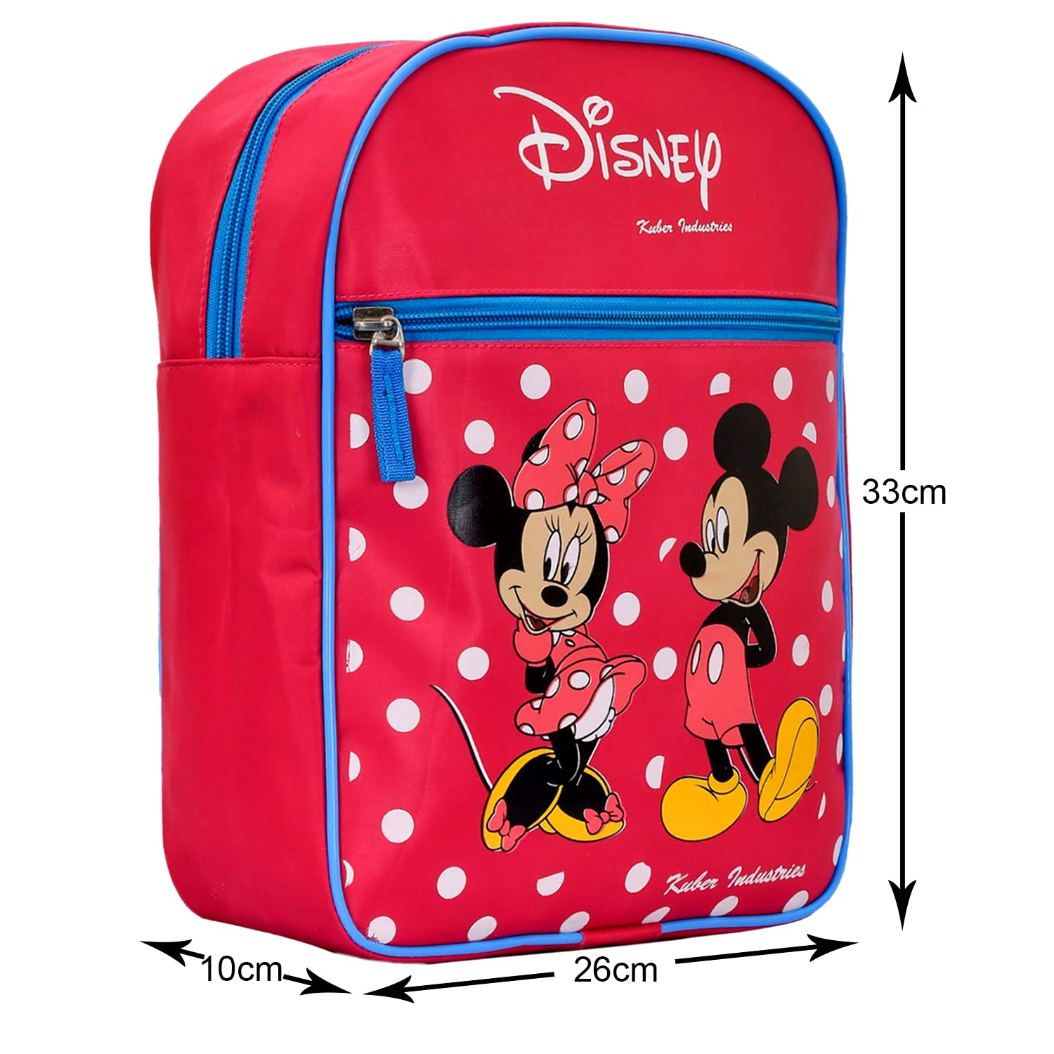 Heart Home present Disney printed kids school bag. This backpack features a friendly Cartoon printed perfect for little one, top hanging loop, crafted details, and a fun, matching zipper pull that’s designed for little hands. The child can take it to school or on a day of picnic. The large capacity bag can hold a number of books, toys and other school supplies your child may need. If your child takes their lunch to school, they will still have enough space for a lunch box. We know just how tough kids can be on their bags. So we used premium quality Rexine material that can handle abrasion, wear and tear and being dropped for years. The bag is waterproof so you should not worry whenever the kids spill their drink on the bag. It come with 1 main large compartment & 1 front pocket enough space for children’s stuffs like toys, foods, napkin, fruits, small books, pencils and other daily items. This bag features with two adjustable shoulder straps fit small children of all ages, and allows you to comfortably and easily adjust this backpack to fit boys and girls of different sizes. This backpack is made with quality fabric and is washable. It will retain its color & shape even after a long time of use. If the backpack has stains, use a soft brush dipped in a one part heavy-duty liquid detergent to one part water solution to scrub away any residue. Wash in warm water in the washer's gentle cycle using your regular laundry detergent.Detailed Specifications: