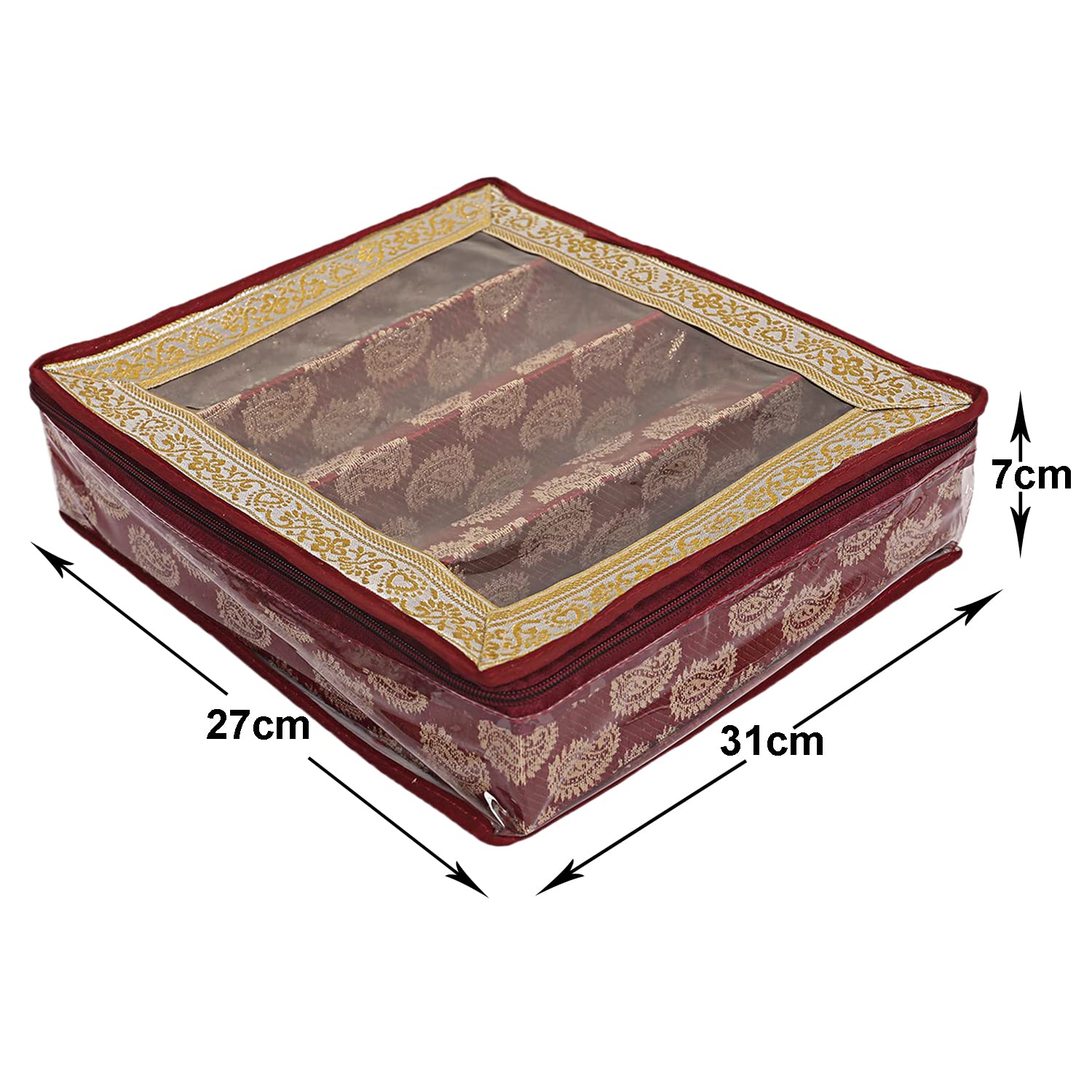 Heart Home storage box, organizer is ideal for storing bangles, watches, Bracelets, jewellery, small accessories etc. This is used to organize your bangles systematically and protect them from breakage so, keep delicate your bangles safely this is enough to keep your bangles and all needs. This bangle box is made of good quality laminated wooden and paperboard material so, this is very durable, long-lasting and very useful. There are 1 rods inside to hold bangles stiffly at a place and avoid unnecessary tangling and breaking. It gives them a strong and stable hold to keep the brittle and beautiful bangles safe. It can accommodate many bangles and helps you in organizing them safely. The box is strong and thus helps in holding the bangles to avoid any breaking and damage. The strong frame fits at any comfortable place and looks indeed beautiful due to its decoration on a strong frame. The three rods fitted into the box completely hold the bangles firmly and strongly. The transparency of the pouch makes it even more revealing and attractive. The see-through pouch helps you see and know what is there inside and what is missing. If anything goes missing or bangles are broken we can immediately take the required steps of either replacing or getting new ones. It always reminds us of the availability and unavailability. With elegant appearance and considerate design, this watch case is great for personal use, shop display and home decoration. Will be an ideal gift for birthday, valentine's day, wedding, Christmas and new yearDetailed Specifications: