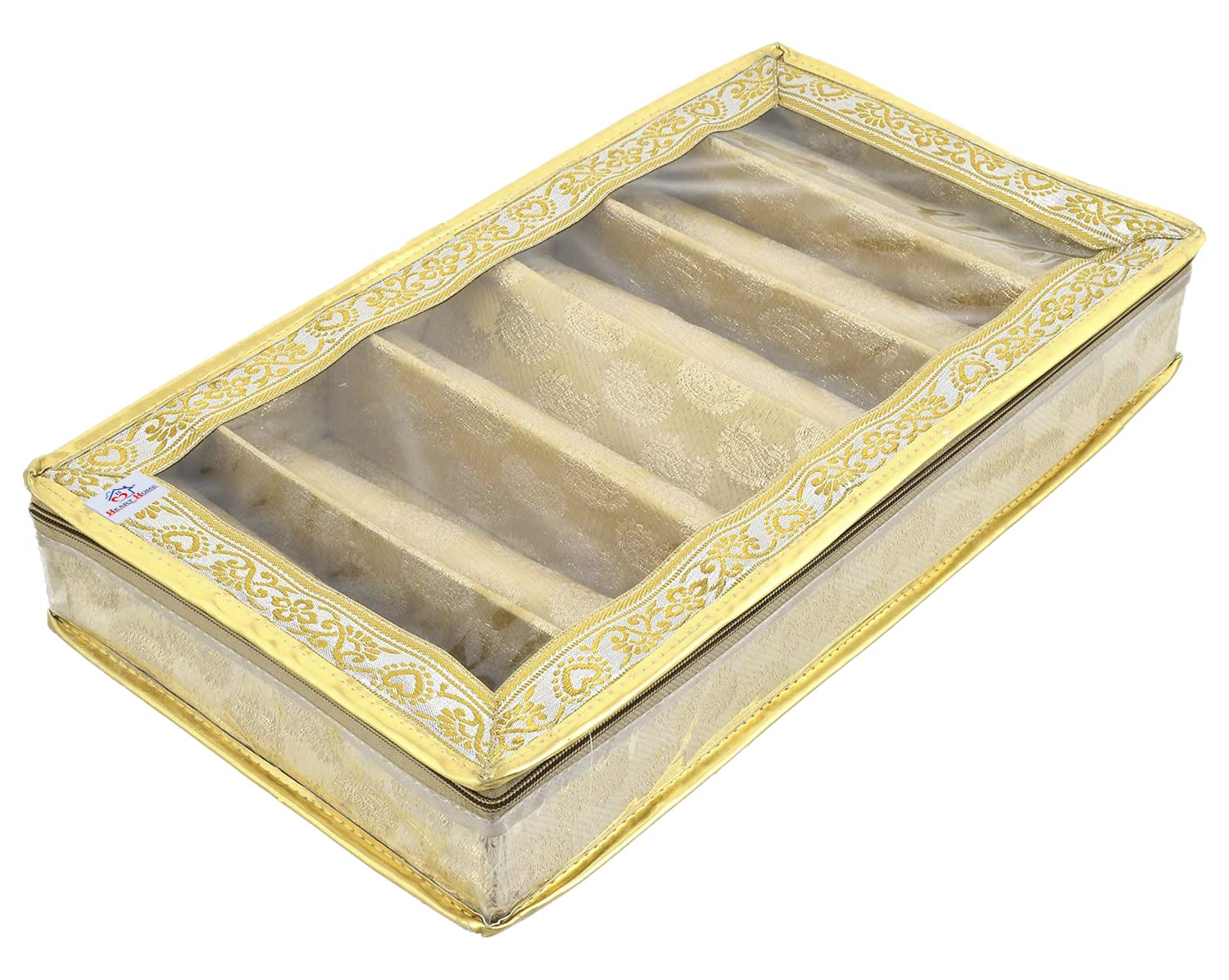 Heart Home storage box, organizer is ideal for storing bangles, watches, Bracelets, jewellery, small accessories etc. This is used to organize your bangles systematically and protect them from breakage so, keep delicate your bangles safely this is enough to keep your bangles and all needs. This bangle box is made of good quality laminated wooden and paperboard material so, this is very durable, long-lasting and very useful. There are 1 rods inside to hold bangles stiffly at a place and avoid unnecessary tangling and breaking. It gives them a strong and stable hold to keep the brittle and beautiful bangles safe. It can accommodate many bangles and helps you in organizing them safely. The box is strong and thus helps in holding the bangles to avoid any breaking and damage. The strong frame fits at any comfortable place and looks indeed beautiful due to its decoration on a strong frame. The three rods fitted into the box completely hold the bangles firmly and strongly. The transparency of the pouch makes it even more revealing and attractive. The see-through pouch helps you see and know what is there inside and what is missing. If anything goes missing or bangles are broken we can immediately take the required steps of either replacing or getting new ones. It always reminds us of the availability and unavailability. With elegant appearance and considerate design, this watch case is great for personal use, shop display and home decoration. Will be an ideal gift for birthday, valentine's day, wedding, Christmas and new yearDetailed Specifications:
