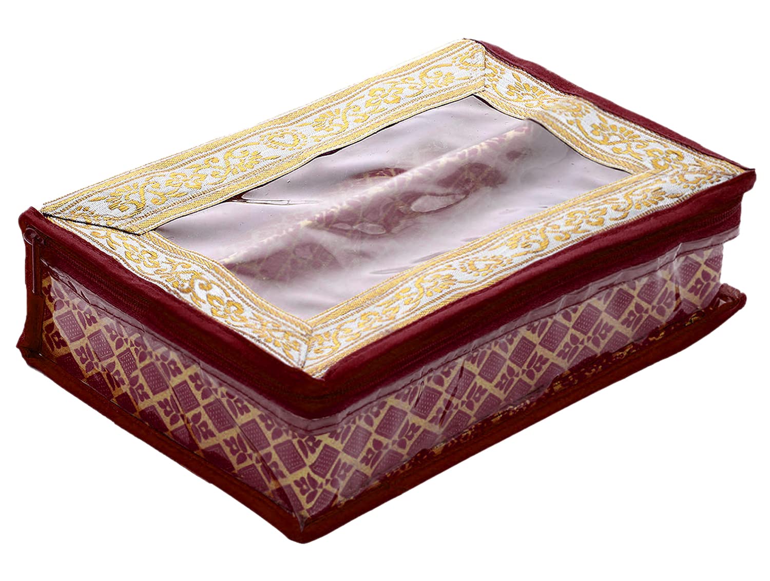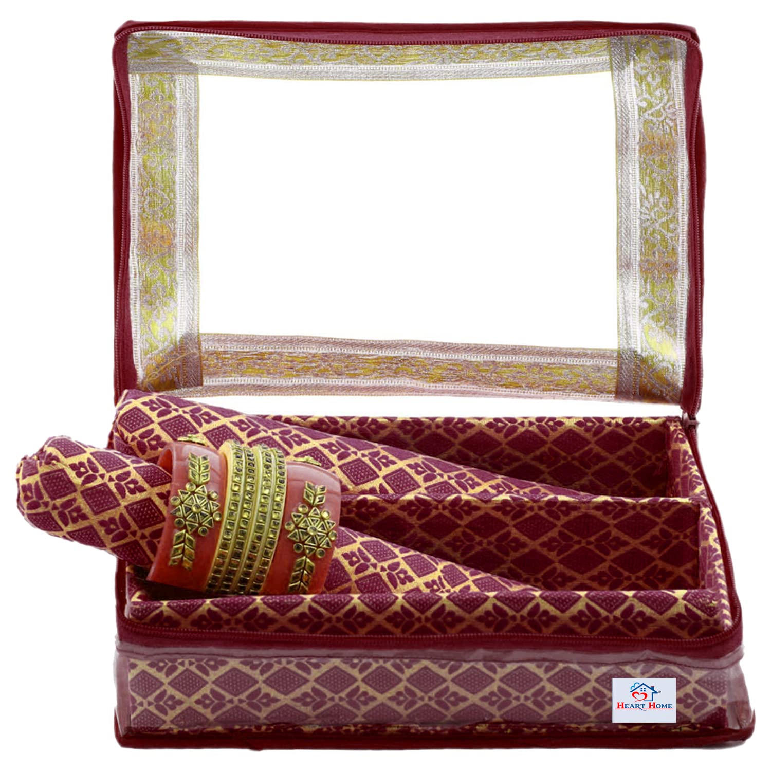Heart Home storage box, organizer is ideal for storing bangles, watches, Bracelets, jewellery, small accessories etc. This is used to organize your bangles systematically and protect them from breakage so, keep delicate your bangles safely this is enough to keep your bangles and all needs. This bangle box is made of good quality laminated wooden and paperboard material so, this is very durable, long-lasting and very useful. There are 1 rods inside to hold bangles stiffly at a place and avoid unnecessary tangling and breaking. It gives them a strong and stable hold to keep the brittle and beautiful bangles safe. It can accommodate many bangles and helps you in organizing them safely. The box is strong and thus helps in holding the bangles to avoid any breaking and damage. The strong frame fits at any comfortable place and looks indeed beautiful due to its decoration on a strong frame. The three rods fitted into the box completely hold the bangles firmly and strongly. The transparency of the pouch makes it even more revealing and attractive. The see-through pouch helps you see and know what is there inside and what is missing. If anything goes missing or bangles are broken we can immediately take the required steps of either replacing or getting new ones. It always reminds us of the availability and unavailability. With elegant appearance and considerate design, this watch case is great for personal use, shop display and home decoration. Will be an ideal gift for birthday, valentine's day, wedding, Christmas and new yearDetailed Specifications: