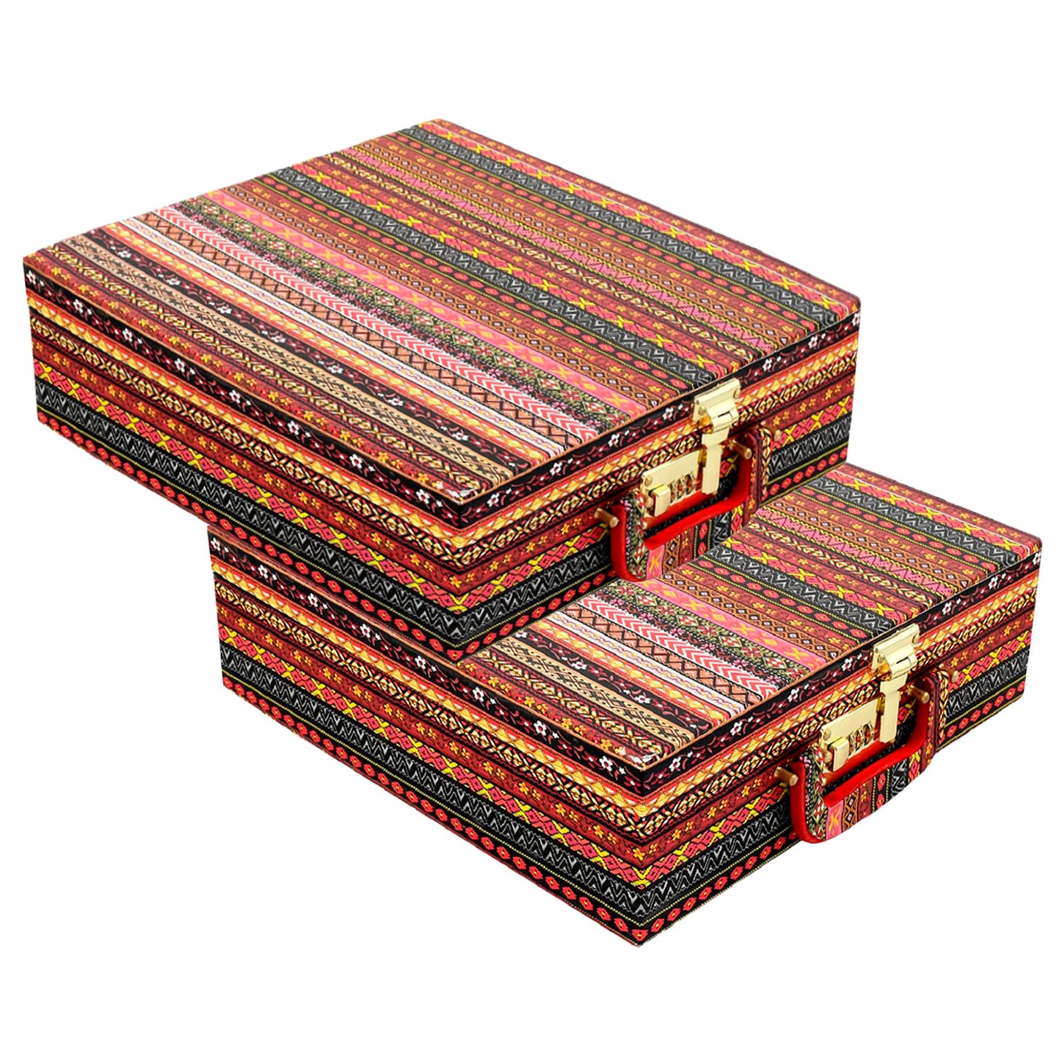 Heart Home Multipurpose Wooden Tribal seamless Pattern 4 Rod Bangle Box/Organizer/Case With Mirror & Number Lock System- Pack of 2 (MultiColour)-47HH0615