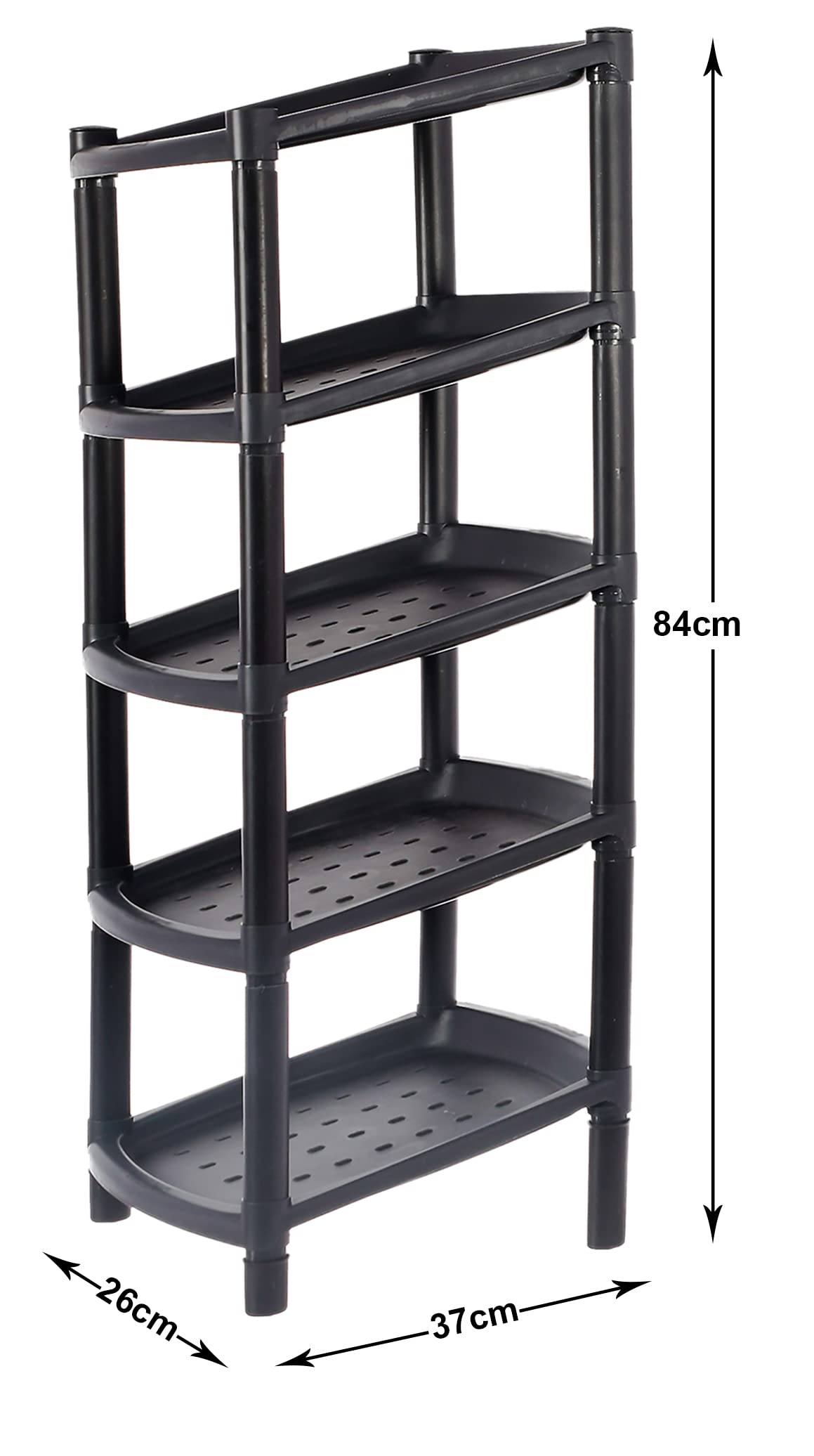 Organize your space with Kuber Industries multipurpose shoe rack. Great solution to keep your entryway, closet, dormitory, patio, mudroom and garage away from mess. 5-tier rack can hold up 8 to 10 pairs of adult shoes, You can remove one layer to fit boots, high heels. This rack is not only for shoes, but also for kitchen utensils, laundry, towels, pet supplies, toolboxes, toys, sundries, books, plants and small accessories. This organizer is made from high-quality virgin plastic material. This storage rack is odorless, non-toxic,non-smell,chemical resistance and heat resistance. It is very lightweight and portable, making it convenient to move around. This 4 tier Shoerack is the perfect choice for your storage needs. It’s compact and elegant design will help your home stay organized yet modern and stylish. It can store upto 8 pairs of your favourite footwear collection with or without shoe boxes. It come with 4 trays, 12 connectors, 4 legs, it can be easily assembled or disassembled in less than 2 minutes without using any tools.Detailed Specifications: