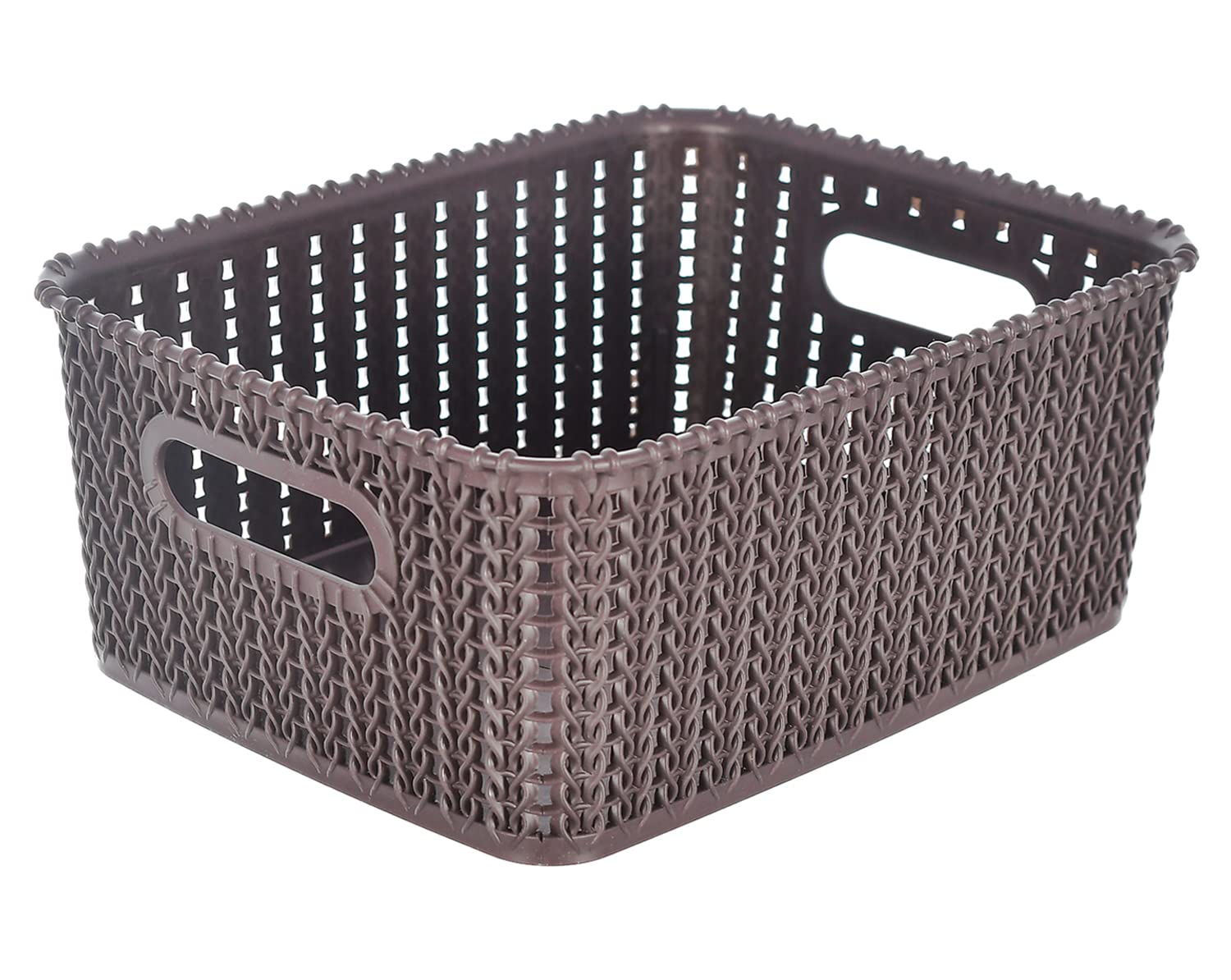 Kuber Industries storage basket perfect storage solution tool to store a variety of household items that are frequently used in the kitchen, countertops, pantry shelves, cabinets, closets, bedrooms, bathrooms, laundry rooms, craft rooms, mudrooms, offices, play rooms, living rooms, garages, or any room of your home / apartment / condo / dorm room / RV or camper. This basket made of high-quality virgin PP plastic body, these baskets are sturdy yet lightweight in nature. The easy to carry handles allow for convenient portability. Compact in size with a flat base, these baskets can be neatly stored away on your shelves, tables, bathroom cabinets and kitchen top. Great storage solution for storing dry goods in the pantry such as food packets, flavors, baking supplies, snack bags, boxed foods, canned goods and more. Use it for anything from toiletries to stationeries great use in beauty supplies, small tools, hobby and crafts parts. Nestable structure to stack inside each other when not in use. The netted pattern allows water to easily flow through, thus facilitating convenience in cleaning.Detailed Specifications: