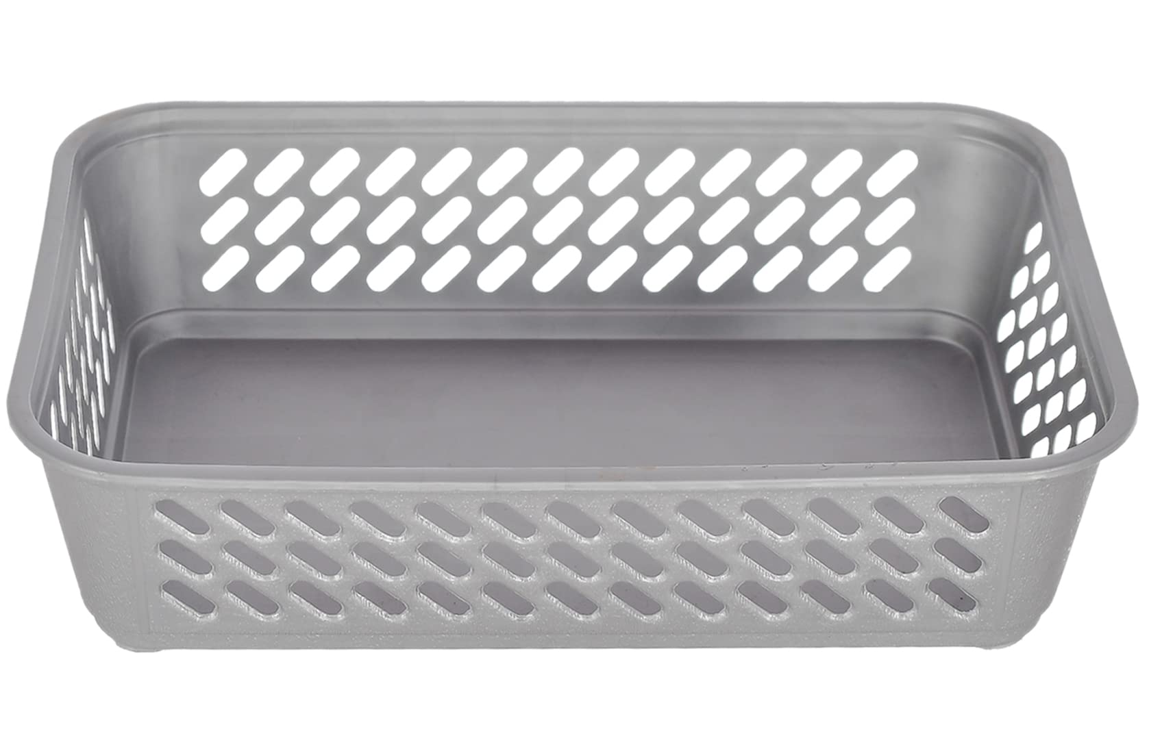 Kuber Industries storage basket perfect storage solution tool to store a variety of household items that are frequently used in the kitchen, countertops, pantry shelves, cabinets, closets, bedrooms, bathrooms, laundry rooms, craft rooms, mudrooms, offices, play rooms, living rooms, garages, or any room of your home / apartment / condo / dorm room / RV or camper. This basket made of high-quality virgin PP plastic body, these baskets are sturdy yet lightweight in nature. The easy to carry handles allow for convenient portability. Compact in size with a flat base, these baskets can be neatly stored away on your shelves, tables, bathroom cabinets and kitchen top. Great storage solution for storing dry goods in the pantry such as food packets, flavors, baking supplies, snack bags, boxed foods, canned goods and more. Use it for anything from toiletries to stationeries great use in beauty supplies, small tools, hobby and crafts parts. Nestable structure to stack inside each other when not in use. The netted pattern allows water to easily flow through, thus facilitating convenience in cleaning.Detailed Specifications: