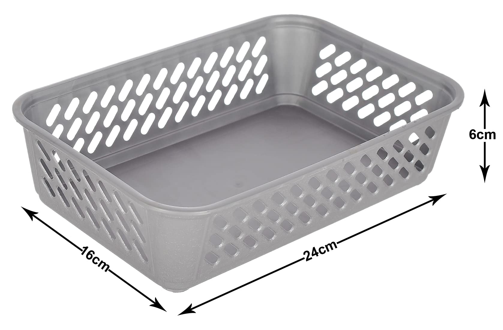 Kuber Industries storage basket perfect storage solution tool to store a variety of household items that are frequently used in the kitchen, countertops, pantry shelves, cabinets, closets, bedrooms, bathrooms, laundry rooms, craft rooms, mudrooms, offices, play rooms, living rooms, garages, or any room of your home / apartment / condo / dorm room / RV or camper. This basket made of high-quality virgin PP plastic body, these baskets are sturdy yet lightweight in nature. The easy to carry handles allow for convenient portability. Compact in size with a flat base, these baskets can be neatly stored away on your shelves, tables, bathroom cabinets and kitchen top. Great storage solution for storing dry goods in the pantry such as food packets, flavors, baking supplies, snack bags, boxed foods, canned goods and more. Use it for anything from toiletries to stationeries great use in beauty supplies, small tools, hobby and crafts parts. Nestable structure to stack inside each other when not in use. The netted pattern allows water to easily flow through, thus facilitating convenience in cleaning.Detailed Specifications: