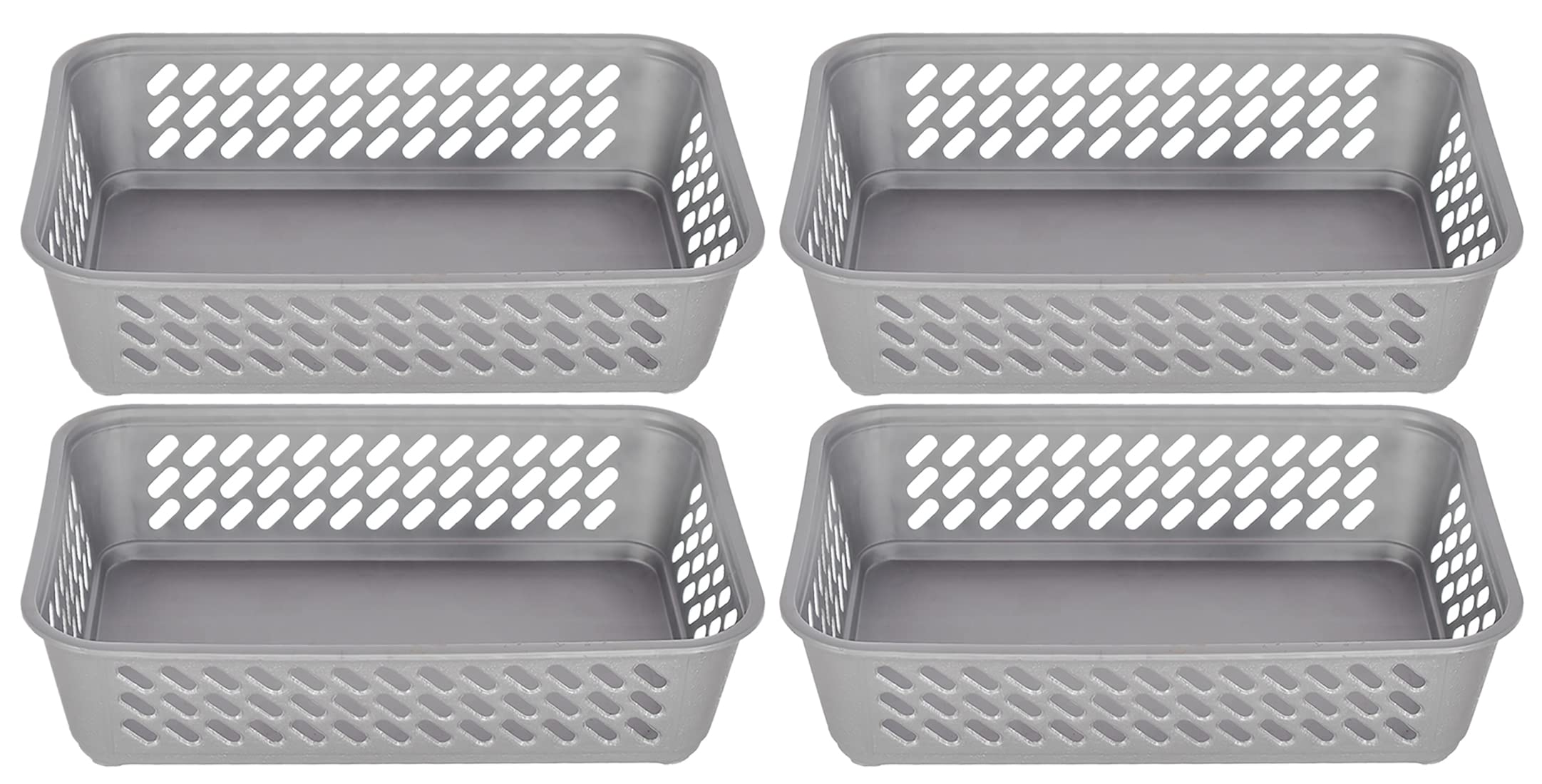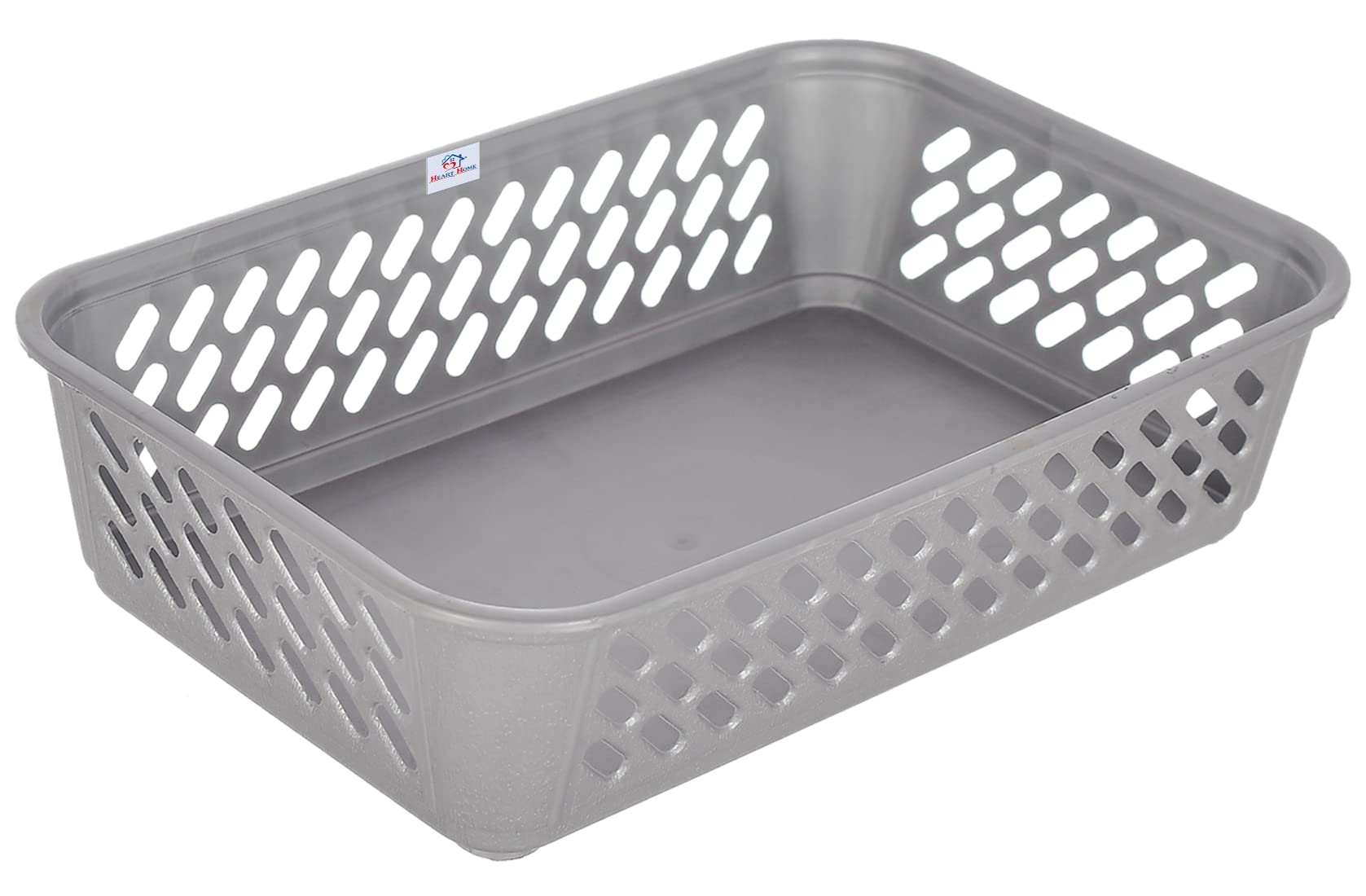 Kuber Industries storage basket perfect storage solution tool to store a variety of household items that are frequently used in the kitchen, countertops, pantry shelves, cabinets, closets, bedrooms, bathrooms, laundry rooms, craft rooms, mudrooms, offices, play rooms, living rooms, garages, or any room of your home / apartment / condo / dorm room / RV or camper. This basket made of high-quality virgin PP plastic body, these baskets are sturdy yet lightweight in nature. The easy to carry handles allow for convenient portability. Compact in size with a flat base, these baskets can be neatly stored away on your shelves, tables, bathroom cabinets and kitchen top. Great storage solution for storing dry goods in the pantry such as food packets, flavors, baking supplies, snack bags, boxed foods, canned goods and more. Use it for anything from toiletries to stationeries great use in beauty supplies, small tools, hobby and crafts parts. Nestable structure to stack inside each other when not in use. The netted pattern allows water to easily flow through, thus facilitating convenience in cleaning.Detailed Specifications: