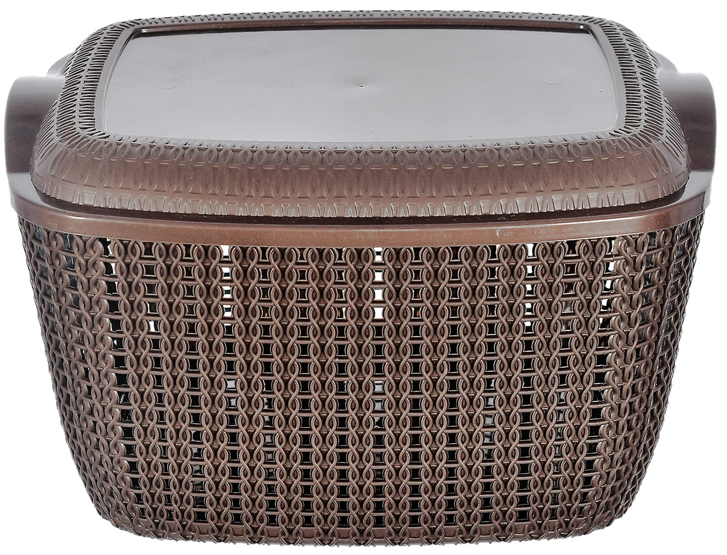 Kuber Industries storage basket perfect storage solution tool to store a variety of household items that are frequently used in the kitchen, countertops, pantry shelves, cabinets, closets, bedrooms, bathrooms, laundry rooms, craft rooms, mudrooms, offices, play rooms, living rooms, garages, or any room of your home / apartment / condo / dorm room / RV or camper. This basket made of high-quality virgin PP plastic body, these baskets are sturdy yet lightweight in nature. The easy to carry handles allow for convenient portability. Compact in size with a flat base, these baskets can be neatly stored away on your shelves, tables, bathroom cabinets and kitchen top. Great storage solution for storing dry goods in the pantry such as food packets, flavors, baking supplies, snack bags, boxed foods, canned goods and more. Use it for anything from toiletries to stationeries great use in beauty supplies, small tools, hobby and crafts parts. Nestable structure to stack inside each other when not in use. The netted pattern allows water to easily flow through, thus facilitating convenience in cleaning.Detailed Specifications: