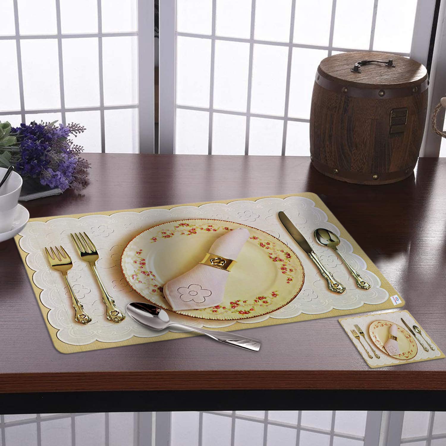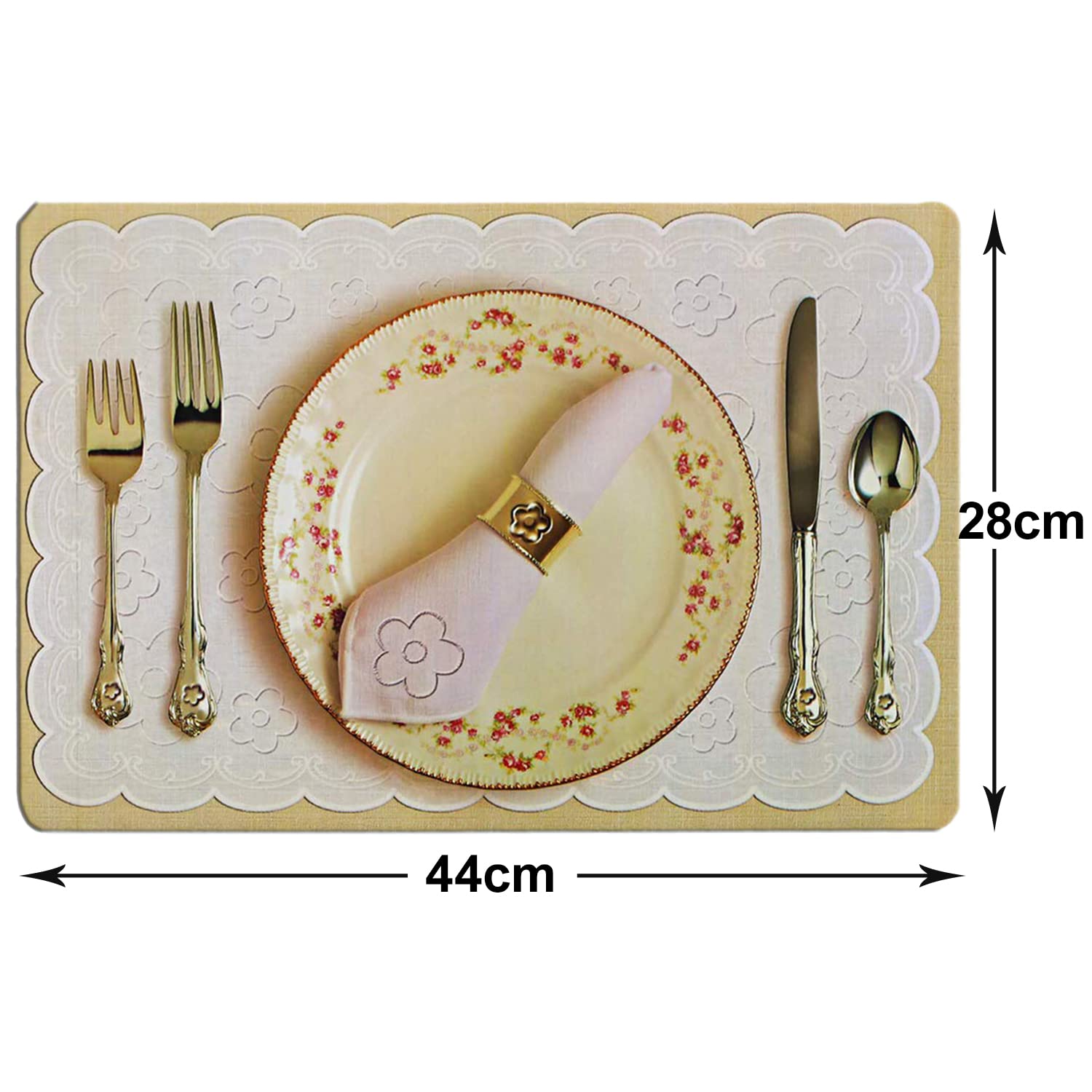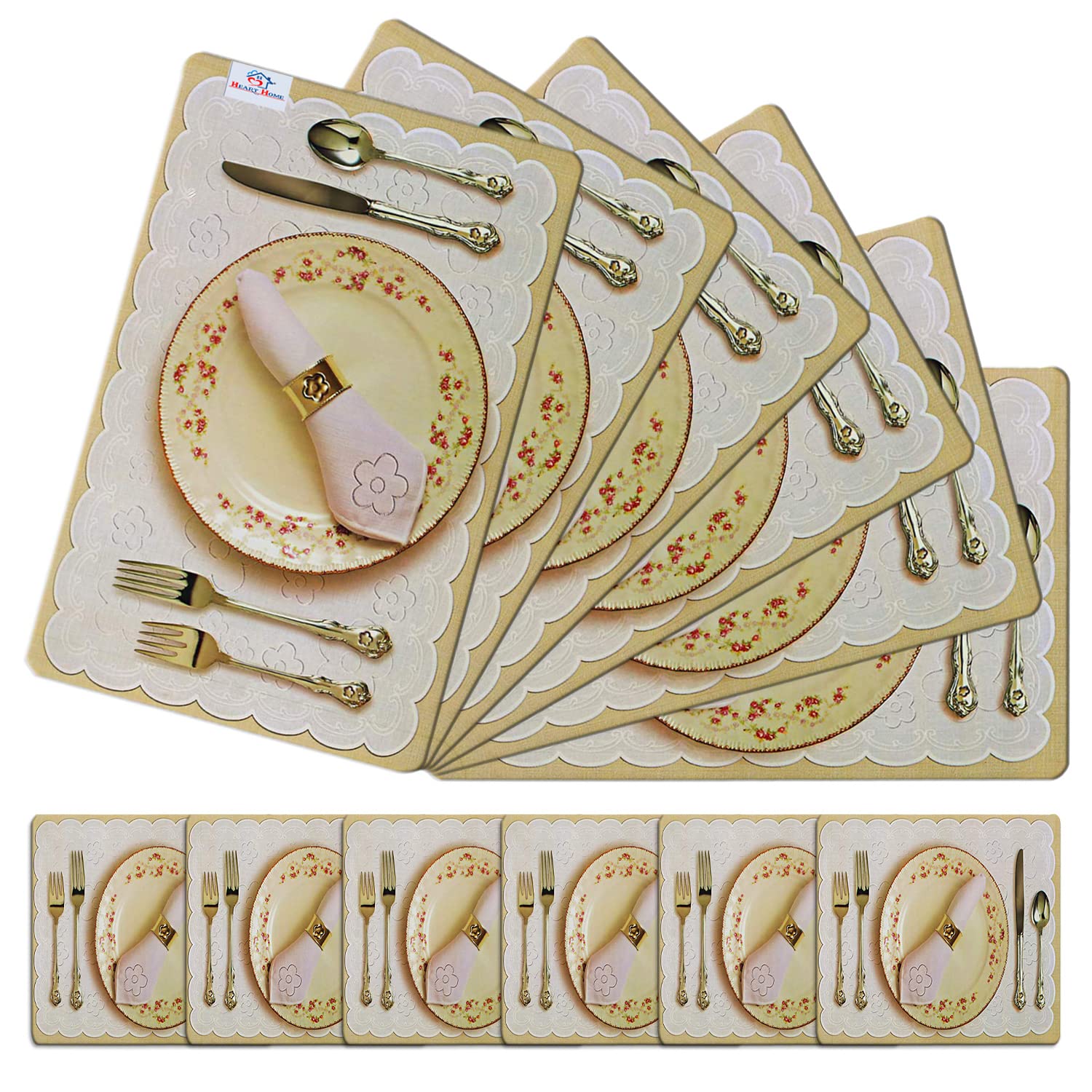Heart Home Placemat precise cutting, no rough edges, medium weight and suitable thickness, giving your table a royal feel for daily use, parties, dinners, restaurants, and wedding receptions. Our placemats cannot slip all around the table, including wood or glass table, they are non slip placemats. Introduce a new look to your dining room, these fabulous dining table mat will give your decor modern, stylish accents while providing the protection to your dining table. Placemats could also be wonderful idea as gift for your Friends & Family for Housewarming, Diwali, Christmas, Birthday or any other occasion.Detailed Specifications: