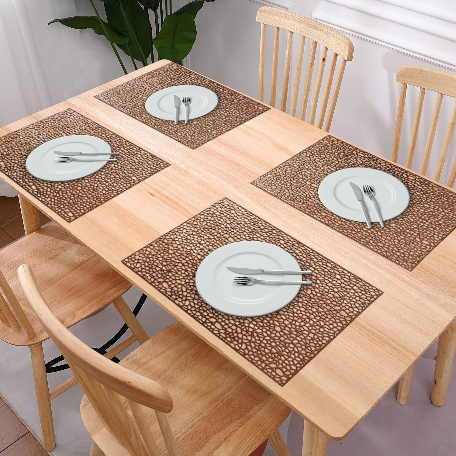 Heart Home Placemat precise cutting, no rough edges, medium weight and suitable thickness, giving your table a royal feel for daily use, parties, dinners, restaurants, and wedding receptions. Our placemats cannot slip all around the table, including wood or glass table, they are non slip placemats. Introduce a new look to your dining room, these fabulous dining table mat will give your decor modern, stylish accents while providing the protection to your dining table. Placemats could also be wonderful idea as gift for your Friends & Family for Housewarming, Diwali, Christmas, Birthday or any other occasion.Detailed Specifications: