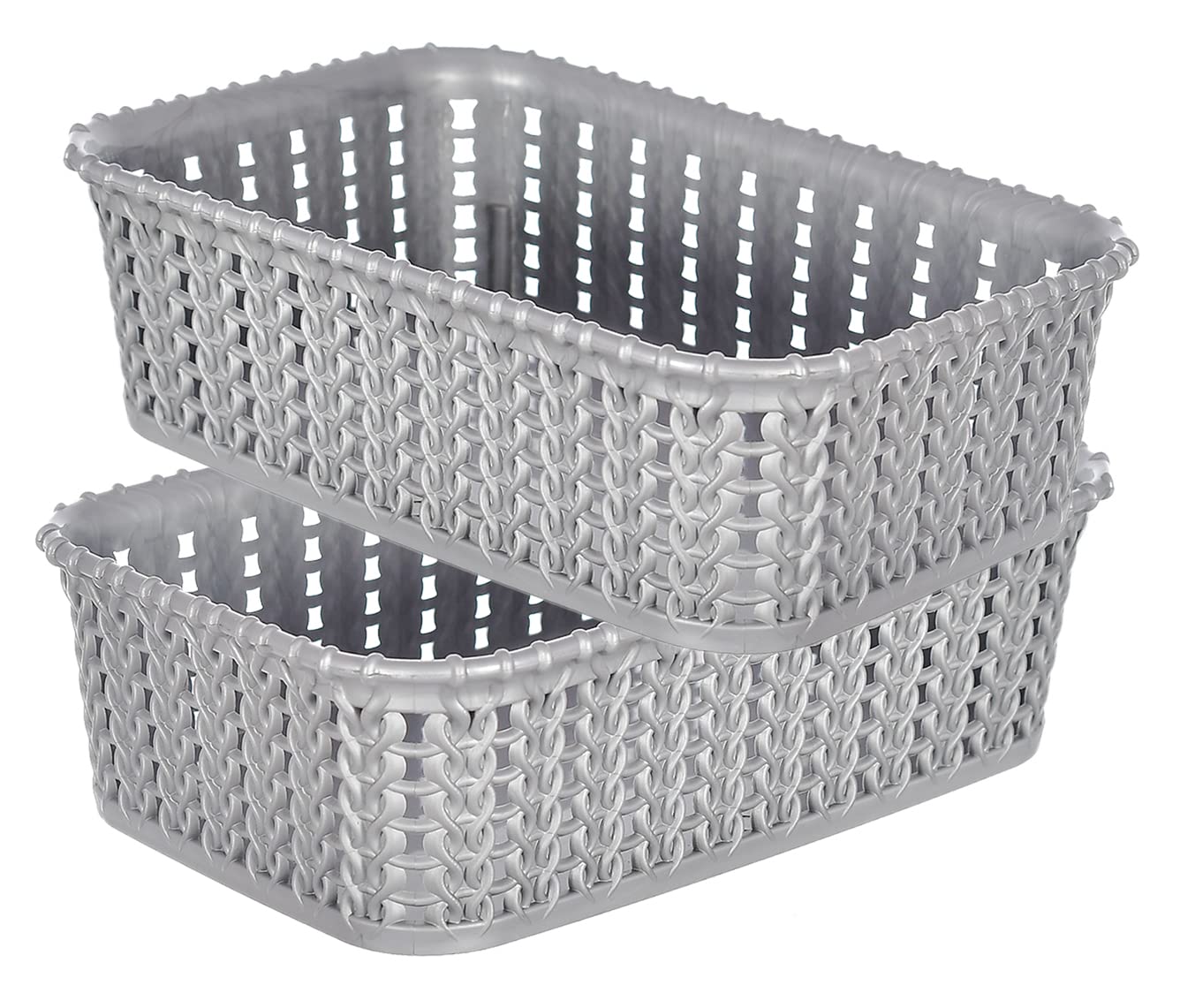 Kuber Industries storage basket perfect storage solution tool to store a variety of household items that are frequently used in the kitchen, countertops, pantry shelves, cabinets, closets, bedrooms, bathrooms, laundry rooms, craft rooms, mudrooms, offices, play rooms, living rooms, garages, or any room of your home / apartment / condo / dorm room / RV or camper. This basket made of high-quality virgin PP plastic body, these baskets are sturdy yet lightweight in nature. The easy to carry handles allow for convenient portability. Compact in size with a flat base, these baskets can be neatly stored away on your shelves, tables, bathroom cabinets and kitchen top. Great storage solution for storing dry goods in the pantry such as food packets, flavors, baking supplies, snack bags, boxed foods, canned goods and more. Use it for anything from toiletries to stationeries great use in beauty supplies, small tools, hobby and crafts parts. Nestable structure to stack inside each other when not in use. The netted pattern allows water to easily flow through, thus facilitating convenience in cleaning.Detailed Specifications:
